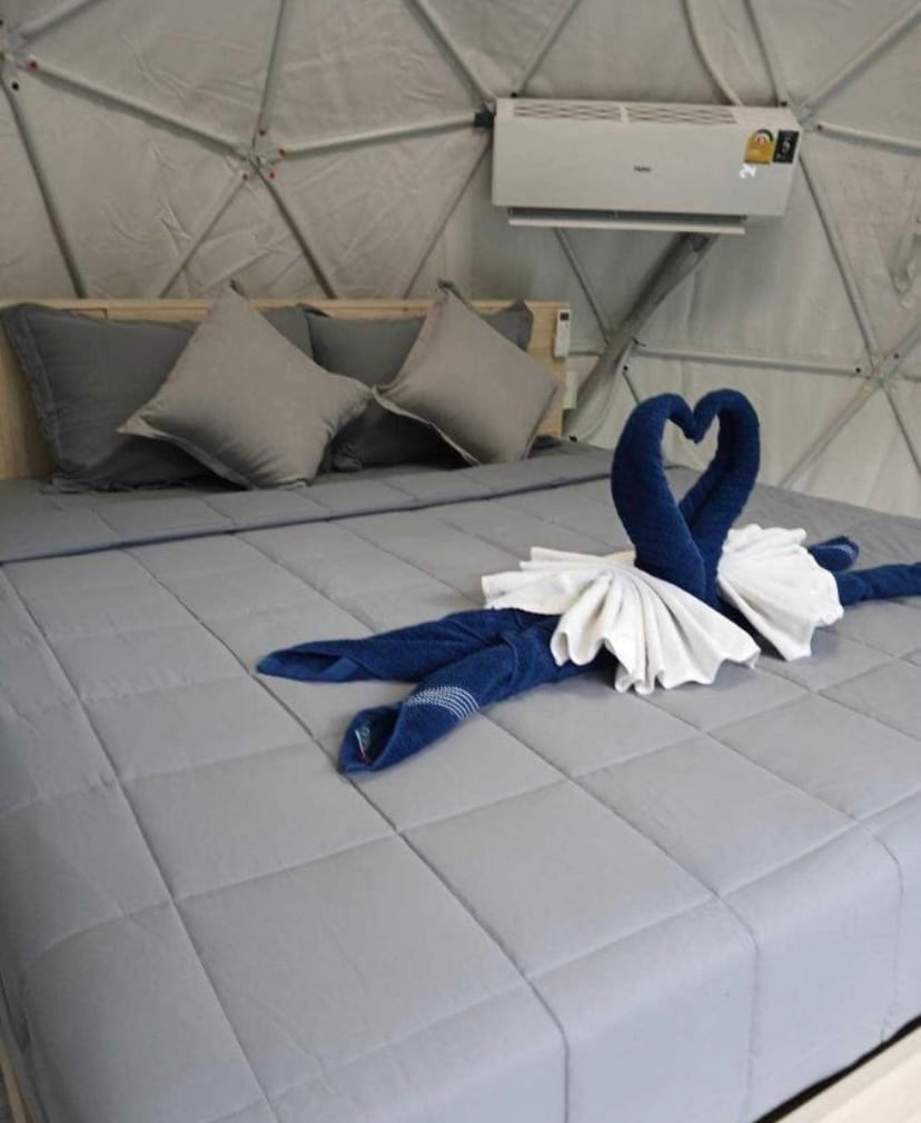 Onze schone en comfortabele koepel met airconditioning, elke koepel is een tweepersoonsbed, een eigen badkamer, warme douche, handdoeken, wifi, mooie tuin, restaurant en bar. Inclusief ontbijt. Gelegen op een minuut lopen van de ingang van het park. Ons koepelkamp is opgericht in 2022 augustus.