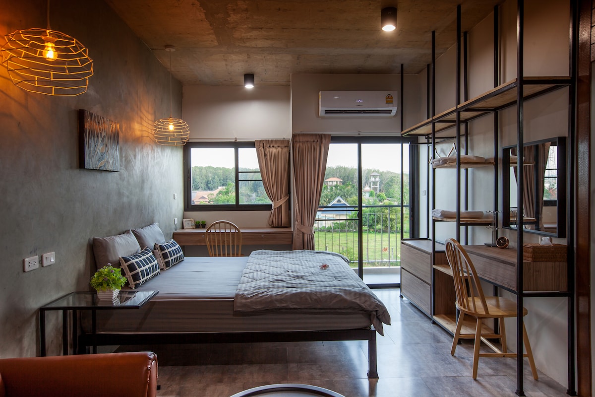 De Grand Deluxe kamers badend in warm natuurlijk zonlicht met stijlvol meubilair, kingsize bed, eethoek en de volledig uitgeruste keuken, inclusief snelle draadloos internet en het balkon met uitzicht op de groene bergen. Alleen kamer (ontbijt is uitgesloten in de kamerprijs), ABF brengt een toeslag in rekening van @ THB. 250.- per persoon per dag. Neem contact op met onze receptioniste in de lobby van het hotel.