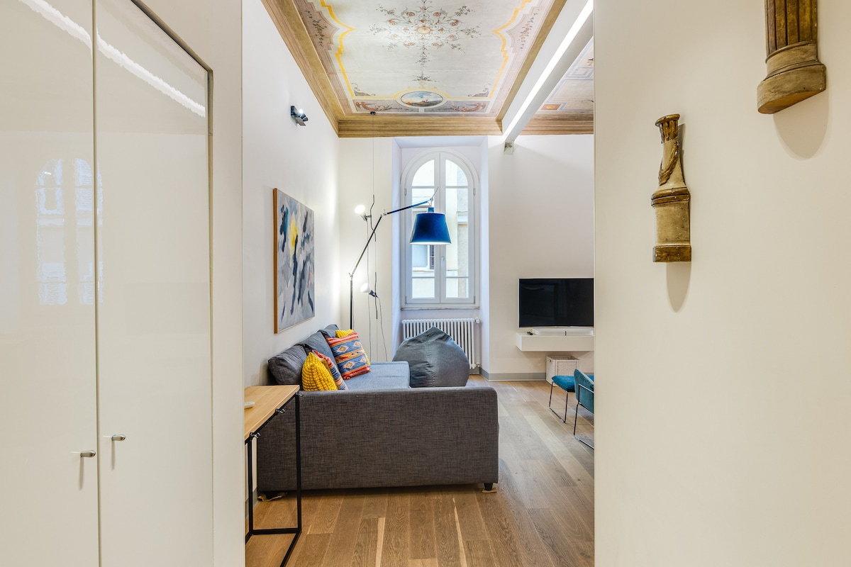 Een rustig toevluchtsoord in het centrum van de stad. Je kunt je onvergetelijke reis door de geschiedenis beginnen door te verblijven in een prachtig appartement op een handige tweede verdieping zonder lift van een oud gebouw dat dateert uit de jaren 1400. De omgeving is echt uniek en schilderachtig. Met ramen op de binnenplaats kun je volledig genieten van de centrale locatie in een intieme en rustige omgeving. Aandacht voor detail en zorg voor de inrichting geeft charme en elegantie