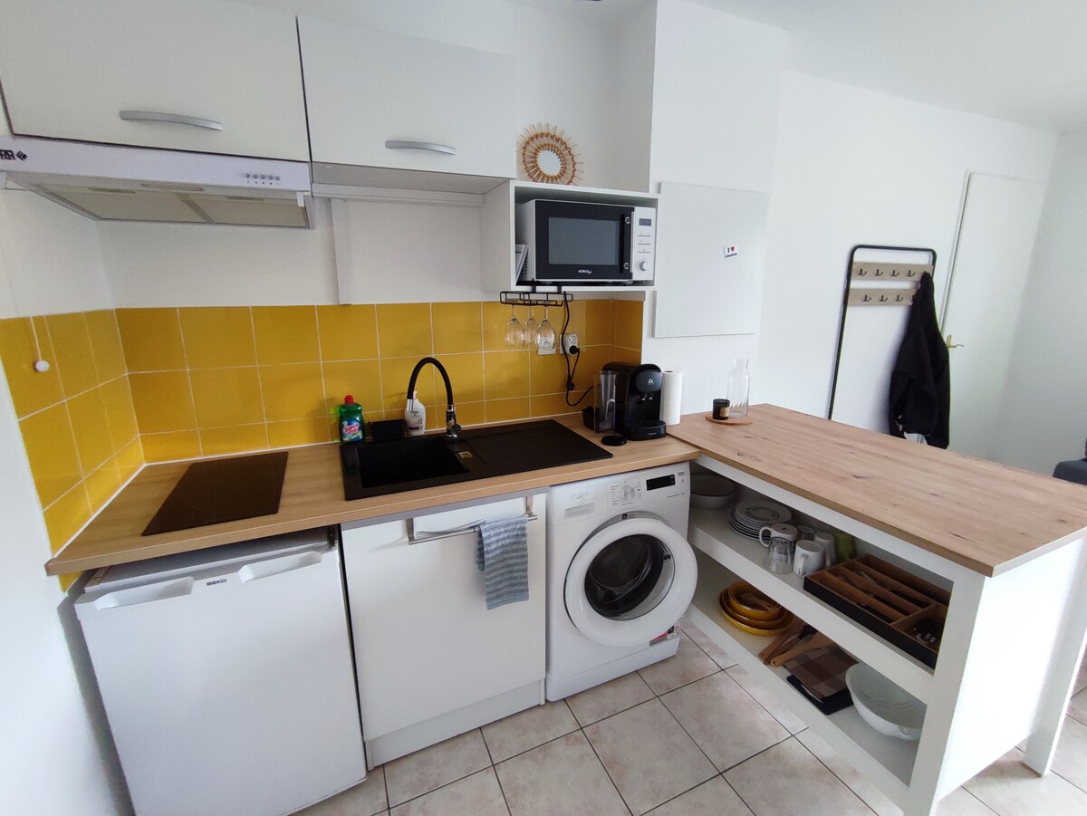 Pibrac volledig centrum, dichtbij alle voorzieningen, nieuwe accommodatie grenzend aan de hoofdwoning. Onafhankelijke, privétoegang, terras op het zuiden en buitenparkeergelegenheid. Appartement met één slaapkamer open naar de woonkamer, grote kleedkamer, 140 × 190 bed, zolderbadkamer met douche en wasmachine, ingerichte keuken en op het zuiden gelegen erkerraam. Omkeerbare airconditioning. Wifi, tv. Beddengoed en toilet zijn voorzien. Airbus 12 minuten sncf station 15 minuten lopen Bus in de buurt