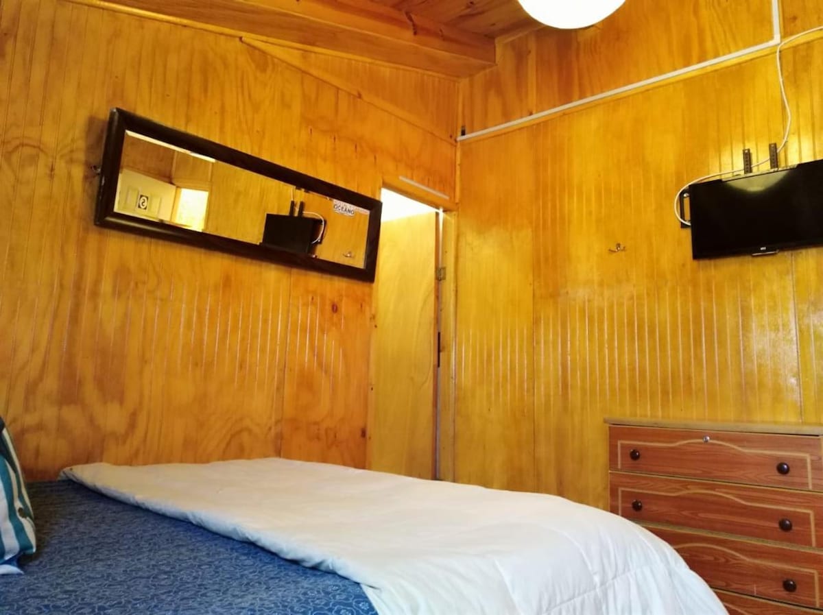 Houten huisje met volledig gevulde keuken. De woonkamer heeft een langzaam brandende kachel. 2 Slaapkamers met hun respectieve beddengoed. 1 kamer met een tweepersoonsbed en nog een kamer met 2 bedden. Het heeft douchehanddoeken en handen. Badkamer met zeep. Met parkeerplaats voor één voertuig. Het huisje ligt op ongeveer 20 minuten van de zee en loopt ongeveer, in een tsunami-beveiligingsgebied. Rustige sector en handel in de buurt. Klein terras met tafel, stoelen, grill en uitzicht op de oceaan.