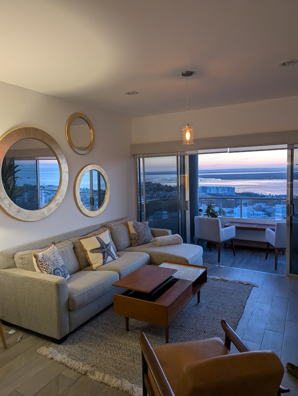 Ranked #1 Romantic Airbnb Vacation Rental in La Paz by Trip101, Casa Cousteau is a 2-bedroom penthouse in a highly-desired private residence. This luxury penthouse lies in the heart of La Paz, next to the city center overlooking the Sea of Cortez and waterfront boardwalk. It has everything you need, and is close to everything that makes La Paz great. Enjoy breathtaking views and sunsets from your balcony or the rooftop terrace with heated soaking pool.