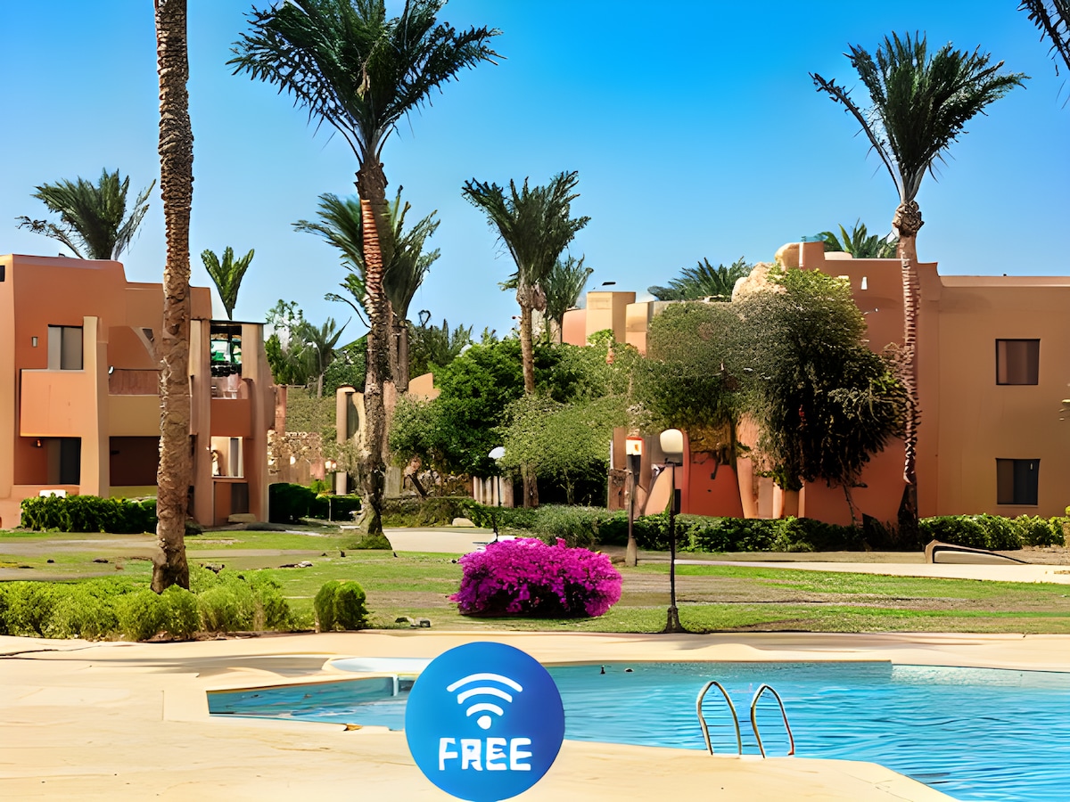 ✨🏖️ Luxe chalet met direct uitzicht op het zwembad en privéstrand ✨🏖️ Geniet van een onvergetelijk verblijf in het hart van de toeristische boulevard van Hurghada🌴, naast de beste hotels⭐. Elegante afwerkingen en uitzicht op een van de grootste zwembaden van de stad🏊♂️. Volledig uitgerust met kookgerei🍳, espressomachine ☕en waterkoker🍵. Perfecte locatie nabij Carrefour 🛒 en Duty-Free🛍️. Privéstrand 🏖️ en avondwandelingen met cafés☕, bars 🍹en winkels🛍️.