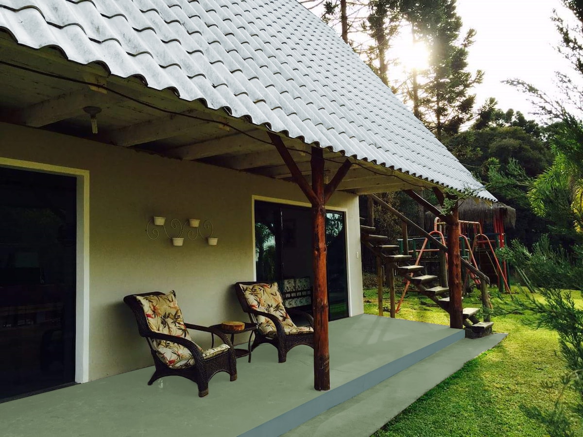 Olá, conheça a Estância Ponta Serrana. Nosso espaço conta um espaço externo, onde temos: - Piscina - Gramado Amplo com rede de Vôlei - Redes para descanso - Cama elástica - Cozinha externa com churrasqueira - Banheiro Além da nossa casa confortável e aconchegante, com: - 03 quartos com 02 camas de casal cada quarto - 01 Banheiro - Cozinha Ampla com churrasqueira - Mesa de Bilhar - TV Venha conhecer.