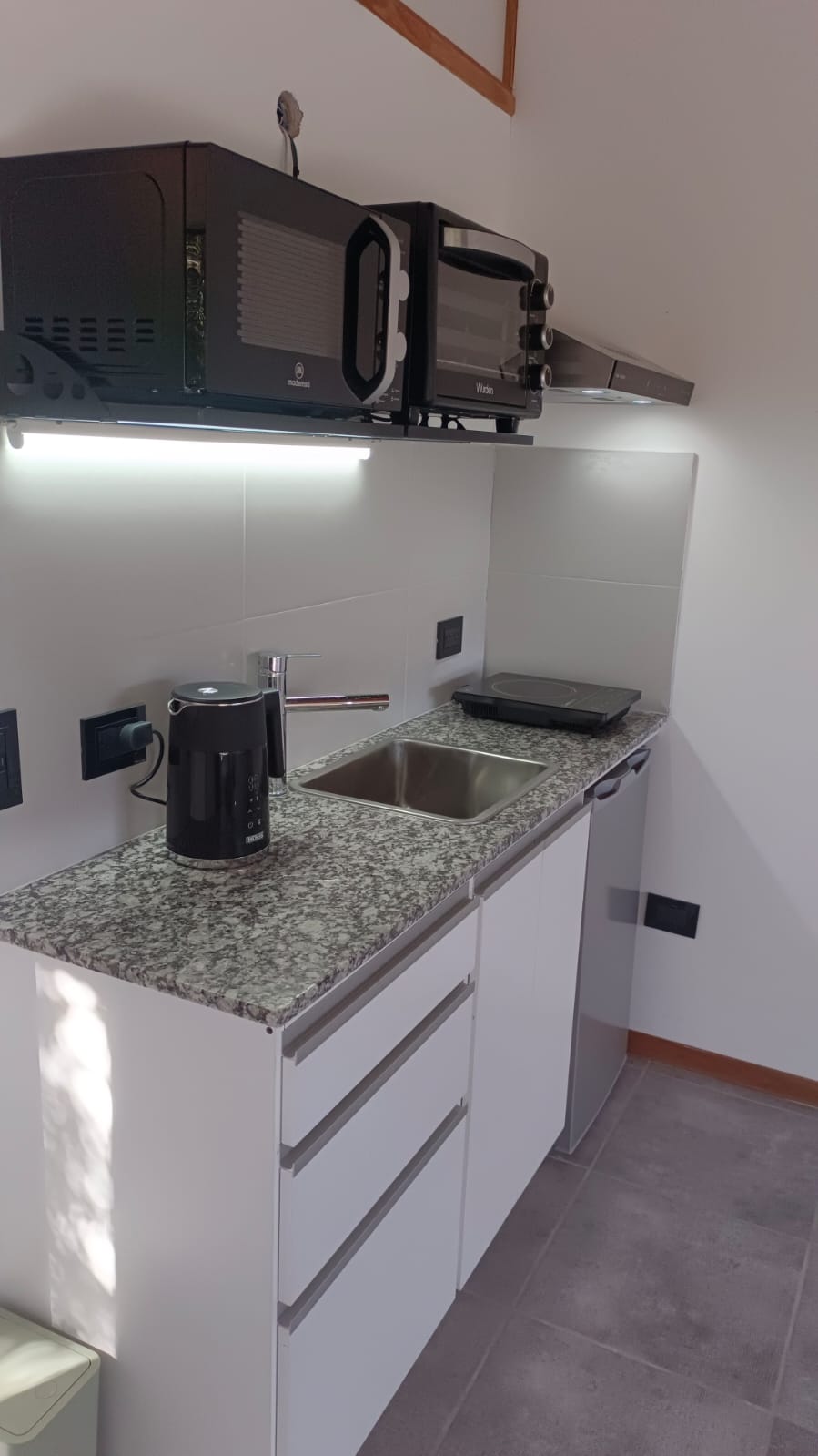 Gloednieuwe complete accommodatie, voor maximaal 3 personen gelegen bij de ingang van Dina Huapi en gemakkelijk bereikbaar vanaf route 40, 300 meter van de rivier Ñirihuau aan het Nahuel Huapi-meer. Rustige plek, met een prachtig uitzicht op de Cerro Catedral, speciaal om te rusten in een omgeving van de natuur: Cerro Leones, Cerro Villegas, Río Ñirihuau, ecologisch reservaat en wetland aan de monding van de rivier, het strand en vissen.