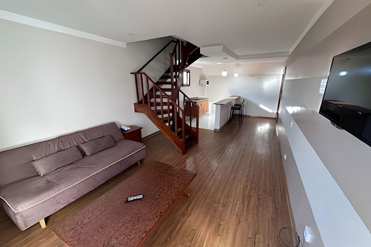 We hebben ontbijtopties, zie prijzen. Verblijf in een flat duplex in de Serra da Mantiqueira, een van de toeristische plekken van Campos do Jordão, met een prachtig uitzicht en een complete clubstructuur. Beddengoed (lakens en dekbedden) en bad (badhanddoeken, gezicht en vloer) aanwezig! De duplex heeft een volledige wasserette, ideaal voor gezinnen met kinderen. Smart-tv in de woonkamer en slaapkamer, 2 balkons (woonkamer en slaapkamer) met uitzicht, milieuvriendelijke open haard, kachel en Airfryer.