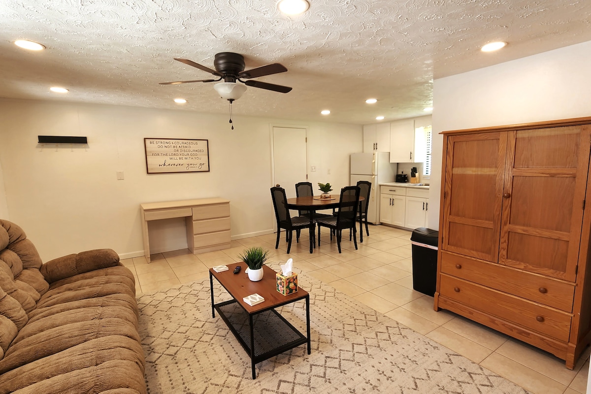 Ervaar pure elegantie in dit onlangs gerenoveerde studio-retraite. Met een eigen ingang biedt het comfortabel plaats aan 3 gasten (2 op het bed, 1 op de bank). Geniet van speciale parkeergelegenheid, een volledig bad, een luxe queensize bed, een gezellige bank en een goed uitgeruste kitchenette. Deze oase ligt in een rustige locatie in de buurt van het centrum van Sarasota en biedt gemakkelijke toegang tot stedelijke lekkernijen. Siesta Beach ligt op slechts 8,7 mijl afstand en Lido Beach lonkt op 5,8 mijl. Je ultieme ontsnapping begint hier!