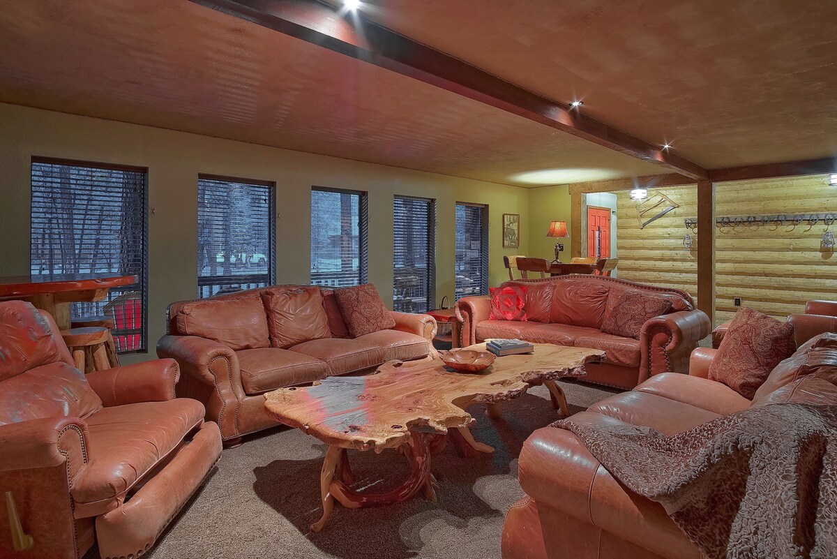 Neem de hele familie mee naar deze unieke hutervaring! Geschikt voor 20! 4 slaapkamers met queensize bedden/kasten, 1 slaapkamer met 2 vol. Gastenverblijven met een eigen keuken/bad/woonkamer. Stapelkamer met zes stapelbedden, perfect voor alle kinderen/neven/vrienden. Twee sets wasmachines/drogers. Veel recreatiemogelijkheden ter plaatse; spa, biljartveld, maïsgat, bordspellen, pingpong, fitnessruimte, enz. Geniet van de rust die de Witte Bergen te bieden hebben zonder ooit je prachtige vakantiehuis te moeten verlaten.