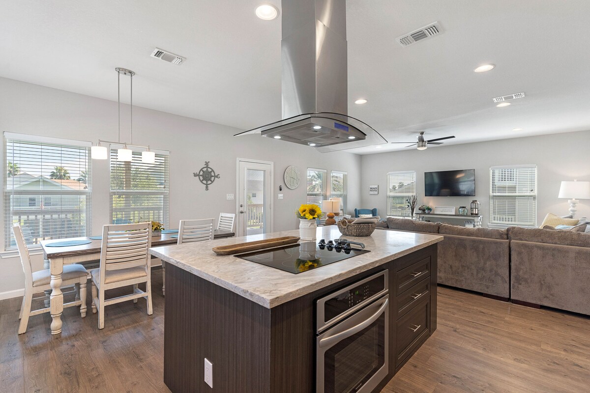 Hasta La Vista! Ontspan en ontspan in dit rustige, stijlvolle huis aan het strand. Ga op het terras zitten met je koffie en luister naar de liedjes van de kustvogels en rustgevende stilte van de oceaan. Grill een aantal goede tijden op de begane grond. Geniet van een heerlijke cocktail op het terras tijdens het spelen van cornhole. Maak lieve s'mores bij de vuurplaats. Maak een snelle wandeling van 3-5 minuten van 1 blok naar het strand zonder het verkeer te hoeven ontwijken of een grote straat over te steken. Geniet van de geschiedenis en charme van Galveston Island!