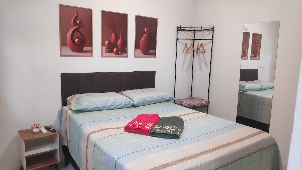 Sua família vai estar perto de tudo ao ficar neste lugar bem-localizado. No local tem: 3 CAMAS SOLTEIRO, UMA DE CASAL E 1 colchão espuma. Banheiro suíte e mais um banheiro social. Cozinha com fogão, armário e geladeira. Maquina de lavar roupa! Tem sala com TV. Fica a uma quadra de farmácia, mercado, pizzaria, padaria, disk, posto de gasolina, sorveteria e lojas. Tem ponto de ônibus e fácil acesso para Uber. Vaga em garagem ao lado - 15 reais a pernoite. Perto da FIB, FACOP,ABDA, e RECINTO.