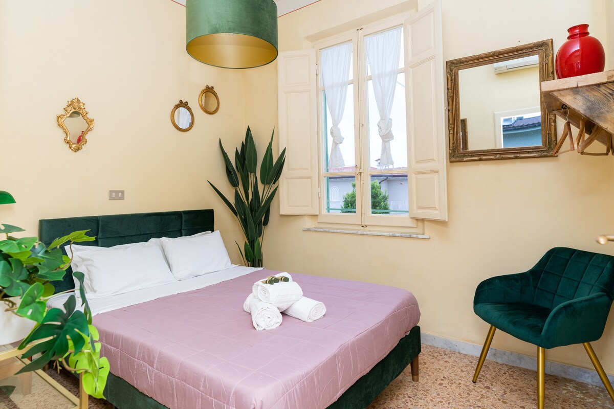 Deluxe Kamer met Kingsize Bed Trakteer jezelf op de luxe van vertragen, adem diep uit en laat je gedachten smelten in de serene sfeer die Scarlea Rooms omhult. Hier wordt elk detail met liefde en toewijding verzorgd om een onvergetelijk verblijf te garanderen, of je nu speciale momenten wilt doorbrengen met je lieve helft of een voet aan de grond wilt vinden voor je avonturen langs de kust van Livorno.