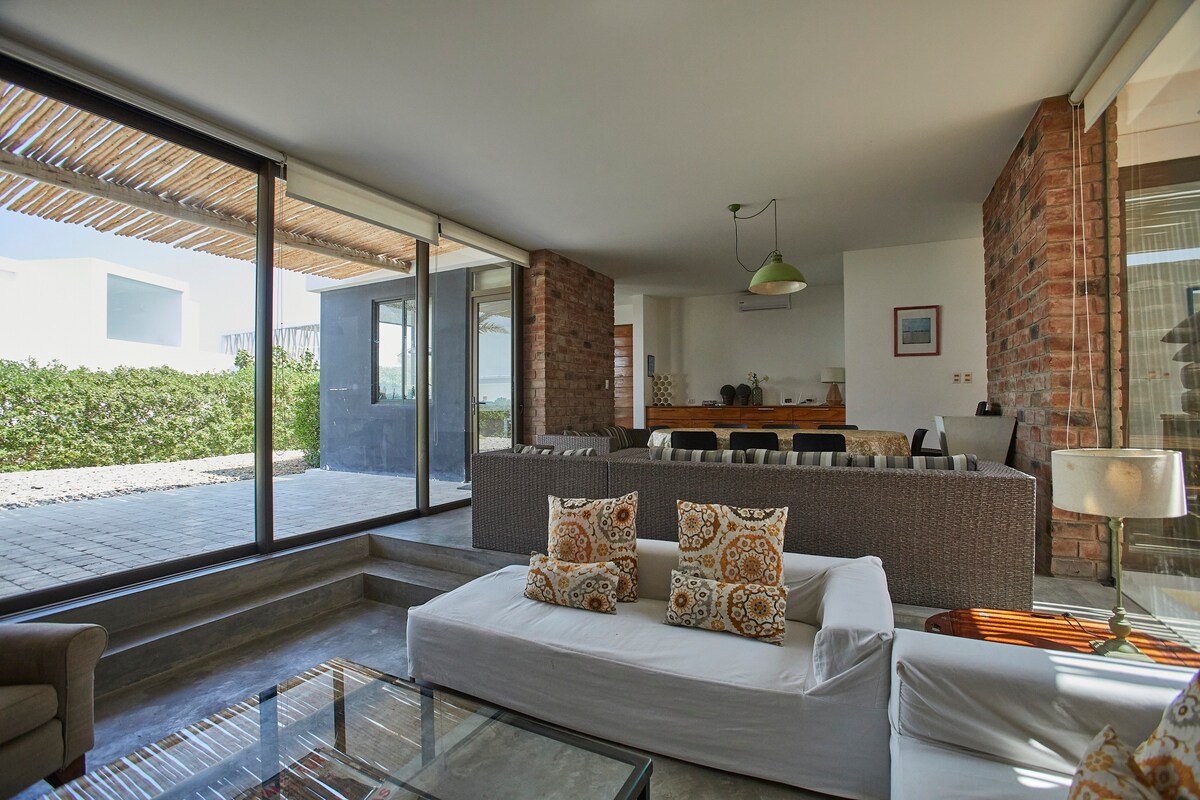 Modern en licht, luxe huis, met zwembad aan het strand, op een steenworp afstand van de oceaan. Huishoudster en privéchef inbegrepen! Gelegen in een van de mooiste natuurreservaten in Zuid-Amerika (Paracas) - een strandoase in het midden van de woestijn, omringd door een nationaal park en eeuwen pre-Inca geschiedenis, en op 1 uur afstand van de Nazca lijnen! 3 ruime slaapkamers met en-suite badkamer en kast, tv-kamer, moderne keuken, wasruimte en een slaapkamer voor servicepersoneel, een echte parel!