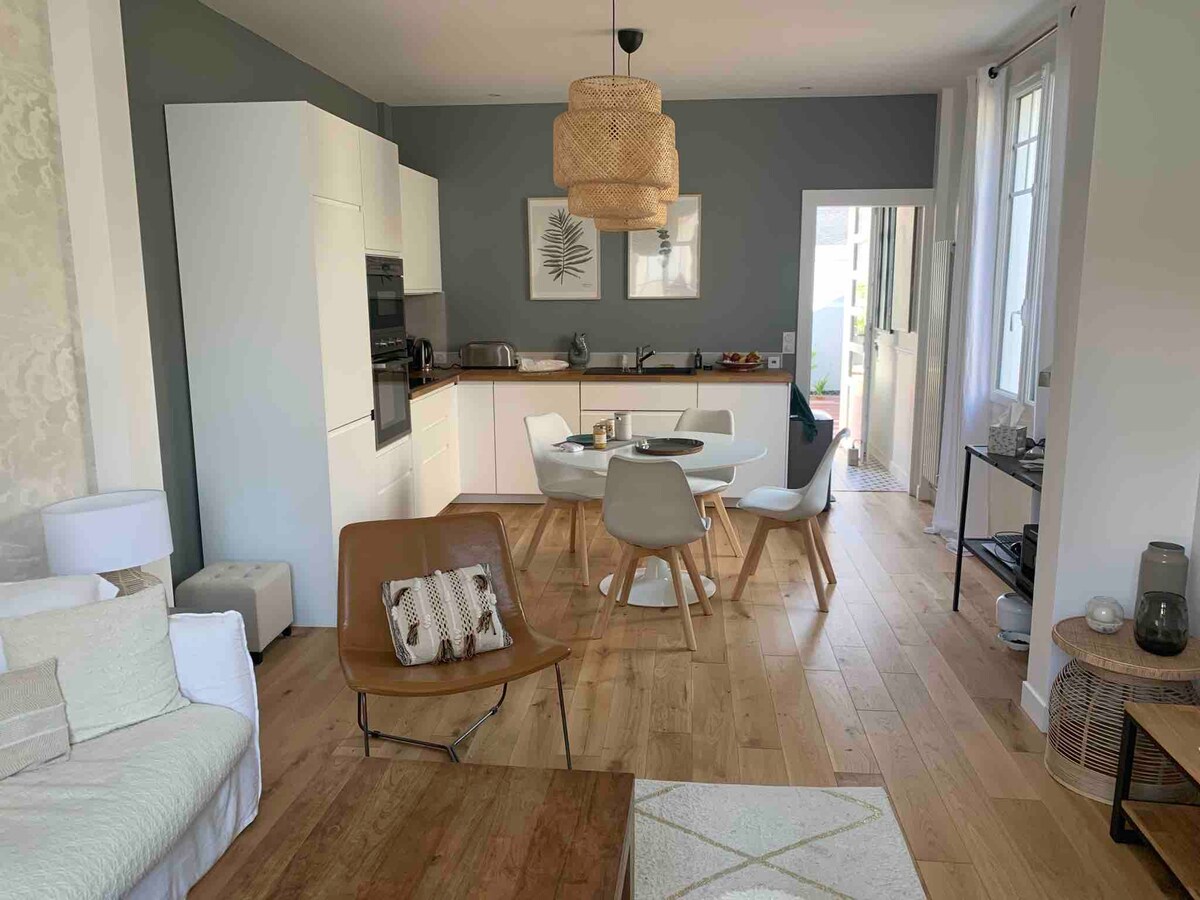 De locatie van het huis is ideaal om alles te voet te doen: 5 minuten van het strand, 2 minuten van de markt en 15 van het treinstation indien nodig. Als je auto eenmaal geparkeerd is, hoeft deze niet meer naar buiten. In de tuin vind je een buitendouche voor als je terugkomt van het strand, evenals een terras met tuinmeubilair. Met bevestigingspunten kun je je fietsen vastzetten. De interieurrenovatie is smaakvol gedaan door onze interieurontwerpervriend in samenwerking met Lisa.