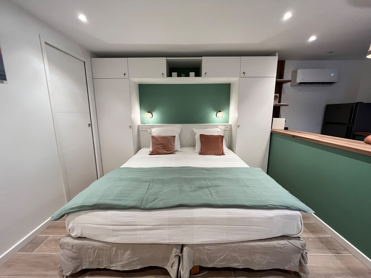 Welkom in de Cadence Residence. Gelegen in het hart van het eiland, in de wijk Camaruche, dit nieuwe appartement van 45m2 gelegen in een nieuwe residentie op de begane grond biedt vele voordelen. Het heeft een terras, een slaapkamer met tweepersoonsbed, een grote badkamer met dubbele wastafel en inloopdouche, evenals een volledig uitgeruste keuken en woonkamer. De moderne en tropische decoratie, zal je laten reizen!