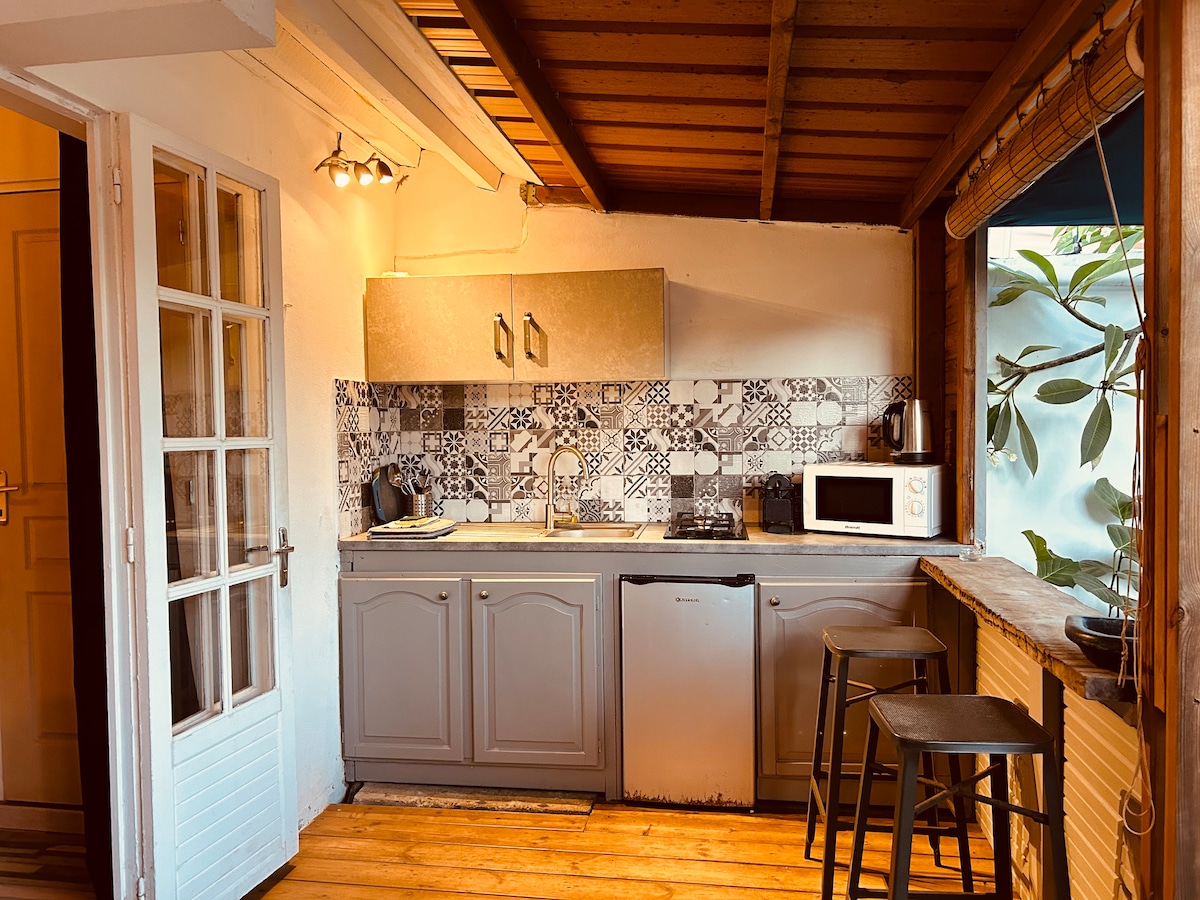 Hallo en welkom bij de Ti Charme de l 'Ermitage Mooie studio met ongebruikelijke keuken, volledig onafhankelijk (aparte ingang), gelegen op 100 m van de lagune Ermitage. Deze prachtige omgeving bestaat uit een mooie 16 M2 slaapkamer met badkamer en apart toilet, een buitenkeuken met zijn kleine bar ,terras en tuin 20 M2 . Lakens, handdoeken aanwezig . Glasvezelinternetverbinding. Nieuw! Ook verkrijgbaar bij Etang sale Ti charm de l Etang sale: https://air.tl/O9Obj8mY