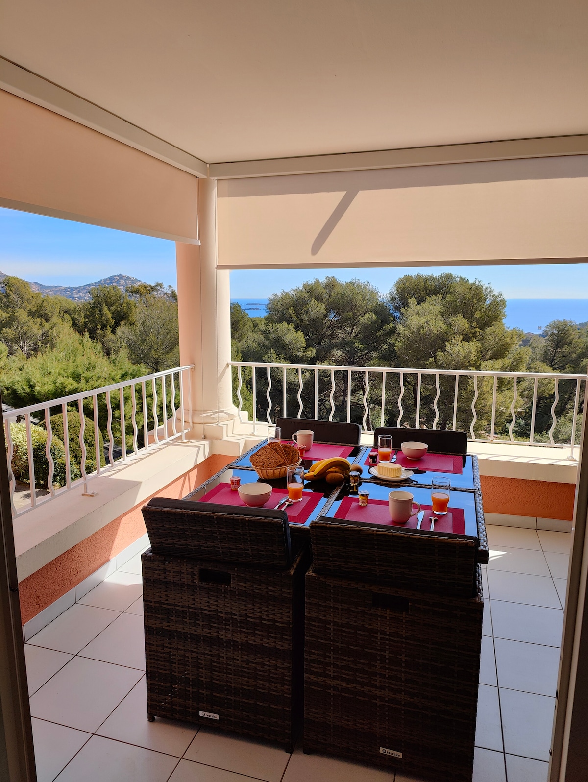 Laat je betoveren door deze speciale accommodatie met zijn stijlvolle meubels. Terwijl het grote terras met een adembenemend uitzicht op de Middellandse Zee en de bergen je uitnodigt om te blijven hangen. De woning is gelegen in een beveiligde omgeving, omgeven door een prachtige, goed onderhouden tuin. Een gemeenschappelijk zwembad en tennisbaan bieden extra ontspanning en sportieve variatie. Het strand, supermarkten en bakkerijen liggen zeer dicht bij de accommodatie.