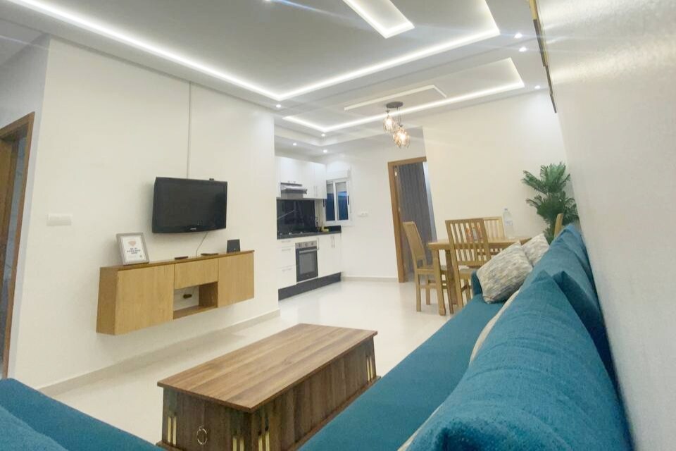 Verken de hedendaagse verfijning op de rand van Tanger. Ons appartement, op een korte wandeling van de jachthaven, biedt een uitzonderlijke toegang tot de stad. Met moderne design, hoogwaardige voorzieningen zorgt deze accommodatie voor een unieke ervaring. Geniet van de charme van Tanger, waar de Corniche-sfeer zich vermengt met moderniteit. Een uitzonderlijke ervaring wacht op je in ons appartement, waardoor onvergetelijke herinneringen worden gecreëerd in het hart van deze levendige bestemming