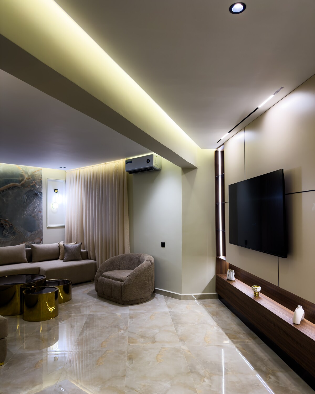 Kom en geniet van absoluut comfort in ons moderne appartement, gelegen in de wijk Malabata. De luxe en nieuwe woning is 24/7 beveiligd door beveiligingscamera 's bij de ingangen en twee conciërges. Het appartement ligt op 2 minuten lopen van het strand, TGV station en winkelcentrum. Je vindt er vele geweldige restaurants, winkels en apotheken in de buurt. Het ligt ook op tien min rijden van de Kasbah, historische musea en ambachtelijke winkels.