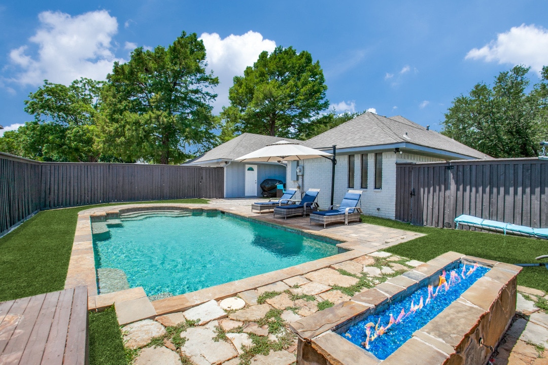 Charmante en ideaal gelegen woning in het hartje van Plano. Super schoon binnen en buiten met een ontspannend verwarmd zwembad, extra grote woonkamer, PS5, speelkamer, jacuzzi, terras en vuurplaats zodat je het mooie leven in Texas kunt ervaren! Terrasmeubilair, loungestoelen en een BBQ-grill zijn beschikbaar in de achtertuin. We hebben veel zwembadspeelgoed, bordspellen, pingpongtafel en kinderspeelgoed voor het hele gezin om van te genieten. De woning is verbonden met snel internet en tv. Wij bieden eenvoudig in- en uitchecken.