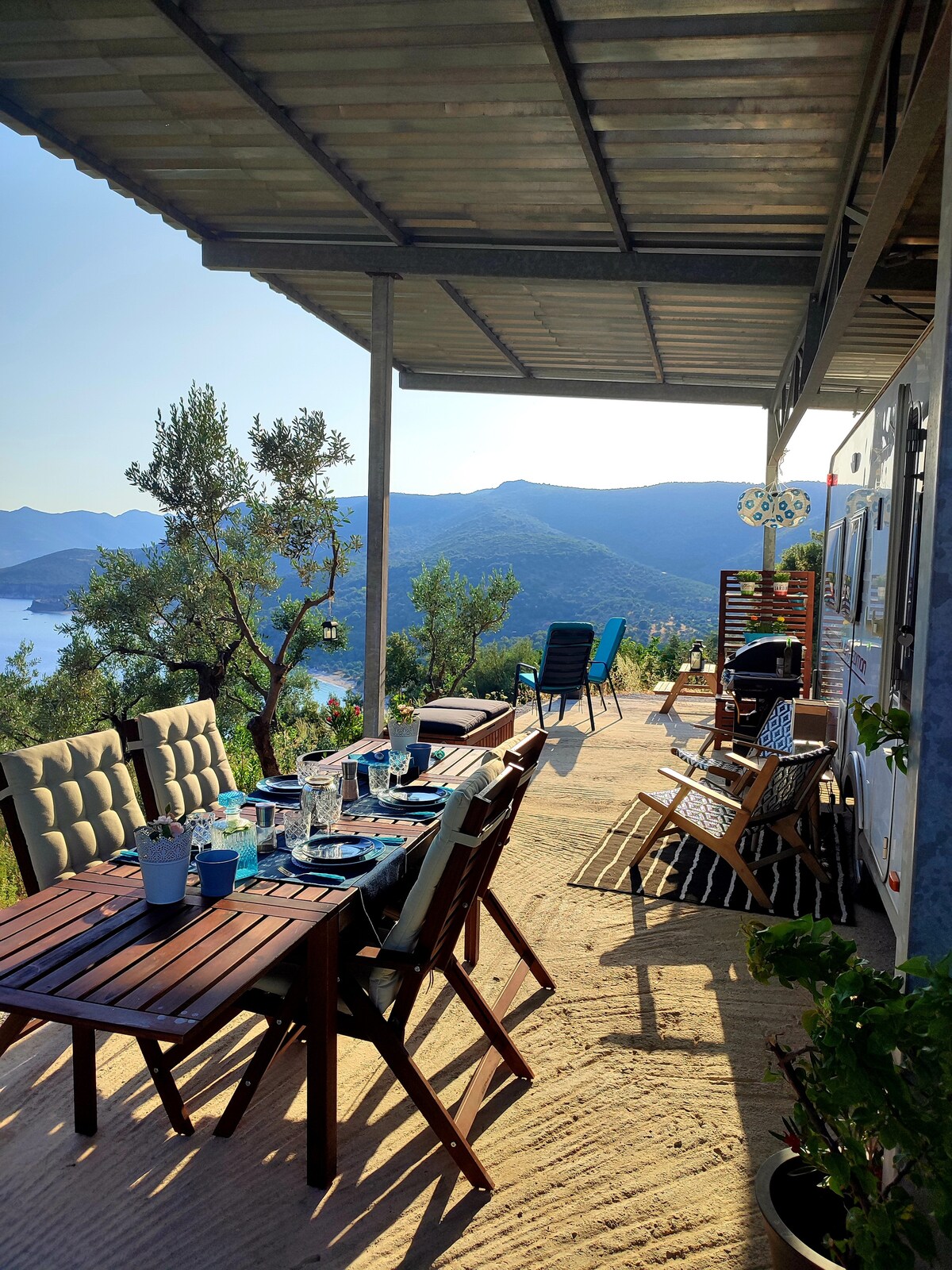 Happinest Treehouse is… A charming cabin for two with beguiling views. Built between ancient olive trees, overlooking the sea. You’ll sleep to the sound of rustling leaves and owls hooting. Wake up to a vision of shimmering waters then wander through a magical Mediterranean garden and dive straight into the sea. Our unique and tranquil getaway is located in undiscovered Pelion, 5km from the village of Milina, on a small bay. We're Happinest Treehouse. Curious? Let the name be your guide!