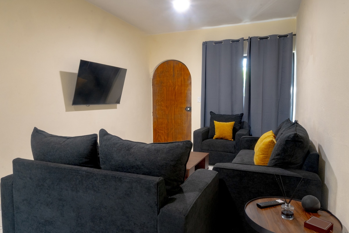“Deze gezellige, volledig nieuwe accommodatie heeft twee ruime en comfortabele slaapkamers, elk met hoogwaardige bedden, airconditioning en WIFI naast tv met Netflix. De twee moderne en schone badkamers bieden alles wat je nodig hebt voor een ontspannen verblijf. Onovertroffen locatie, omdat het op korte afstand ligt van de Feria de Colima, het centrum en de centrale bus. Het is de ideale keuze voor stellen, vriendengroepen of zakenreizigers die op zoek zijn naar een comfortabel en handig verblijf."