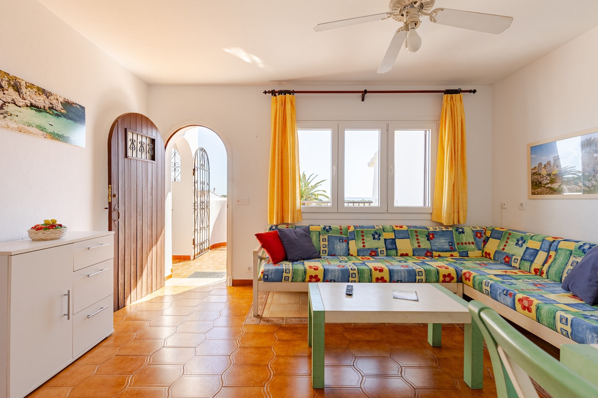 Cozy 2-bedroom apartment with WIFI in the well-kept San Jaime complex, just a 10-min walk from Son Bou beach. Small, well-equipped kitchen with stove, microwave, toaster, kettle, Italian espresso maker and Nespresso machine. Bathroom with bathtub and washing machine. Two furnished balconies – perfect for breakfast in the morning sun.