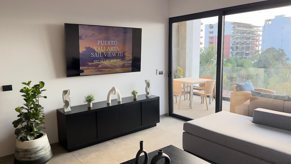 Uitzicht op de oceaan, zonsondergangen op het dak en het beste van Puerto Vallarta aan je voeten. Dit moderne appartement met 1 slaapkamer ligt hoog op de 11e verdieping van het luxe 105 Sail View in het hart van Zona Romántica — drie korte blokken van Playa Los Muertos. Stap naar buiten naar cafés, galeries, strandclubs en het nachtleven... kom dan thuis op een rustige, verheven en weids uitzicht op de Stille Oceaan. Ochtendkoffie op je balkon, middagen bij het overloopzwembad, 's avonds kijken hoe de zon in de oceaan smelt — zwevend boven het geheel.