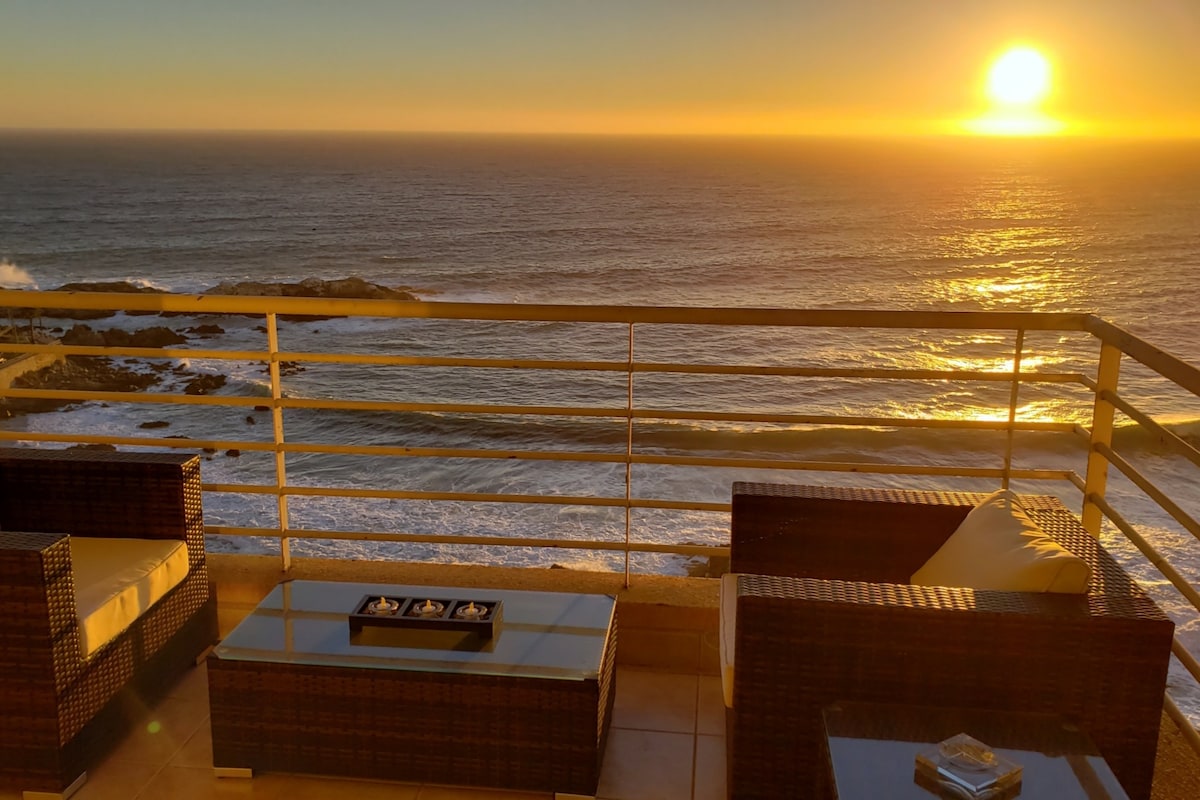 Eerste uitzicht op de oceaan, unieke zonsondergang. Nieuw appartement