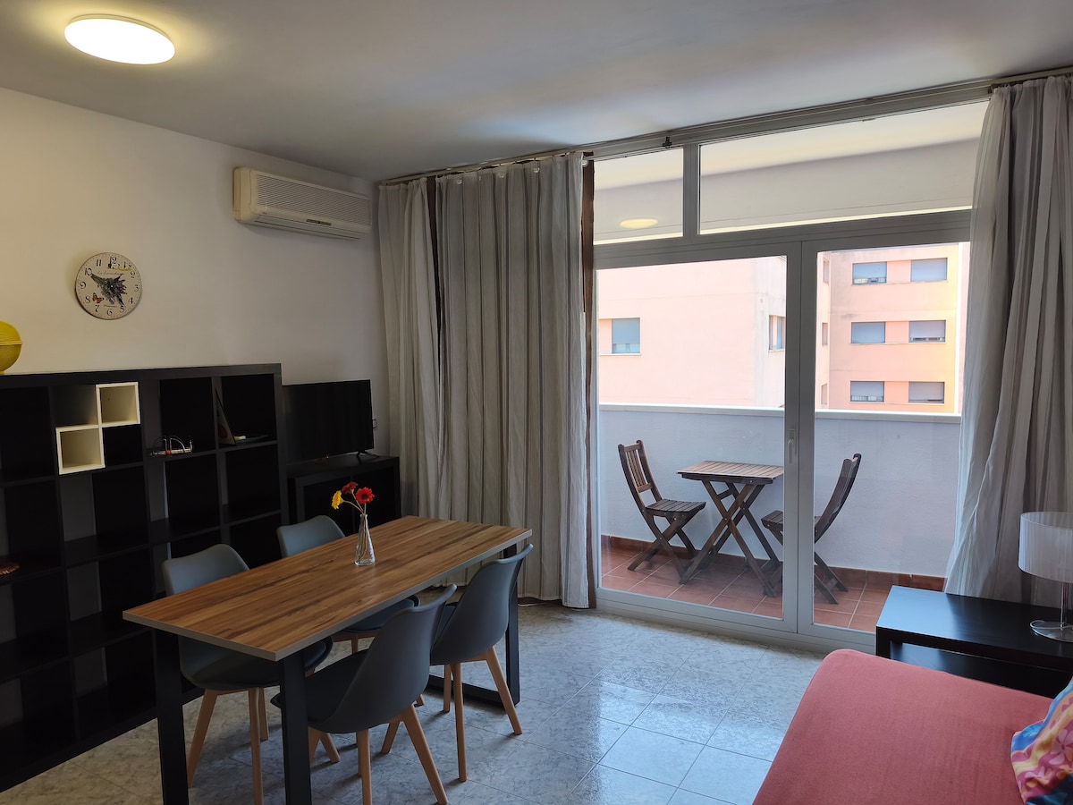 Mooi studio-appartement in Blanes, Costa Brava, volledig gerenoveerd op de tweede lijn van het strand, met gemeenschappelijk zwembad, bewaakte en gesloten speelruimte voor kinderen, ideaal voor gezinnen. Met 2 tweepersoonsbedden en 4 slaapplaatsen. Het heeft een lift, tv, kitchenette met keramische kookplaat, koelkast, magnetron, vriezer, serviesgoed / keukengerei. Dichtbij alle voorzieningen.