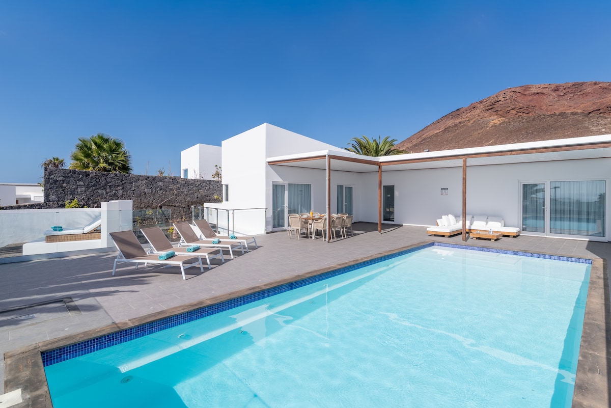 Villa Luna is enclosed in a beautiful private housing development called Playa Bastian, with several swimming pools, in a very quiet and privileged area of Costa Teguise. It is located at 50 meters from one of the beaches of the promenade. On walking distance to other beaches, plenty of restaurants, shops, supermarkets and the village’s centre (Pueblo Marinero). Villa Luna is situated by the coast in the centre of the island, the perfect gateway to go visit Lanzarote.