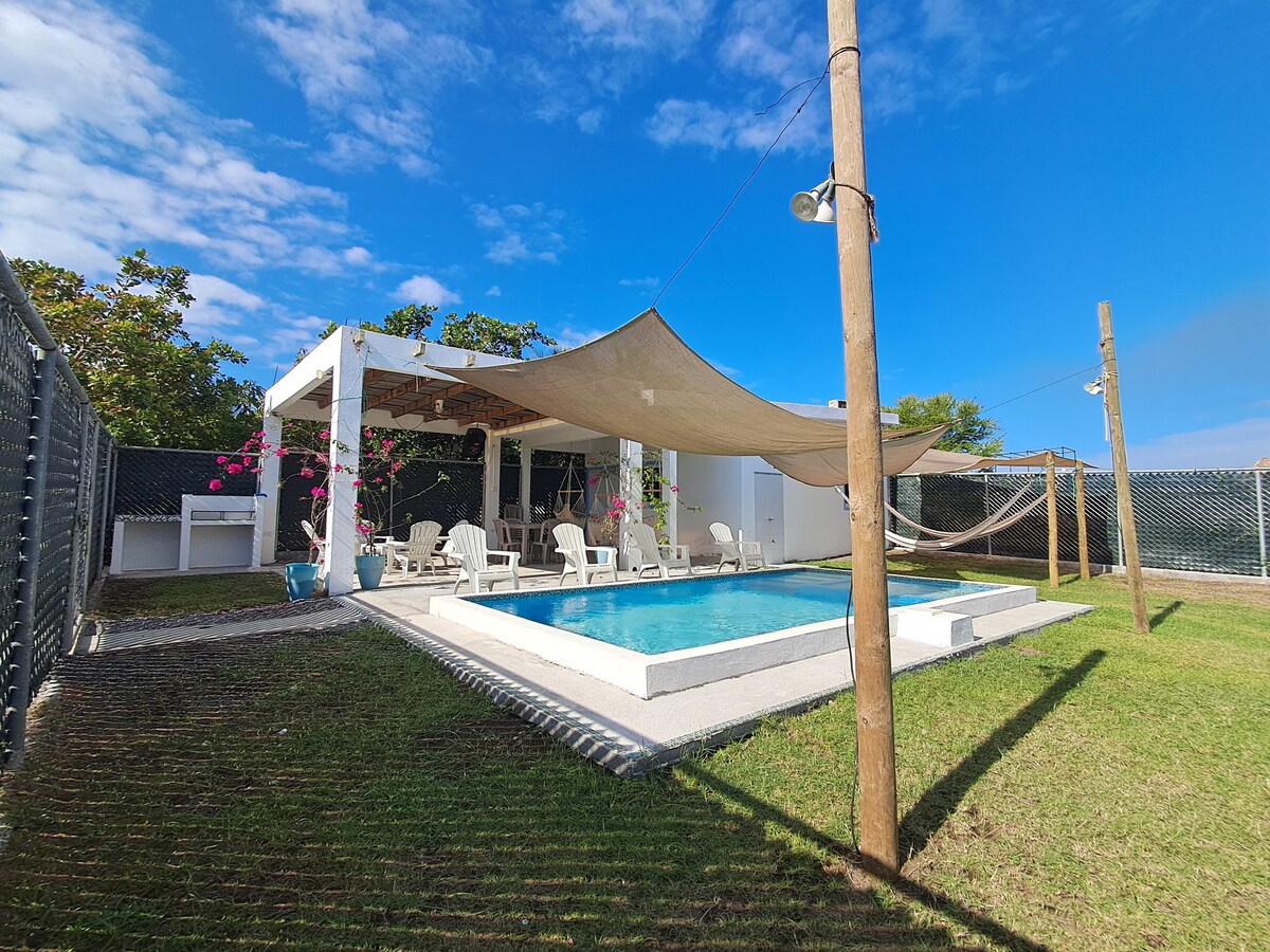 Strandhuis op 100 meter van de zee, met groot zwembad (11 meter lang) met vers water. **INCHECKEN 10.00 uur - UITCHECKEN 15.00uur** Slaapkamers met airco, uitgeruste keuken en privéparkeergelegenheid. Het huis is verspreid en wordt compleet geleverd met schone lakens en kussens. Het heeft geen ruimtes gedeeld met andere mensen. Weinig voertuigen kunnen zonder problemen naar binnen. Gelegen op 5 km weg naar Monterrico, het oversteken van de brug van Iztapa naar Monterrico.
