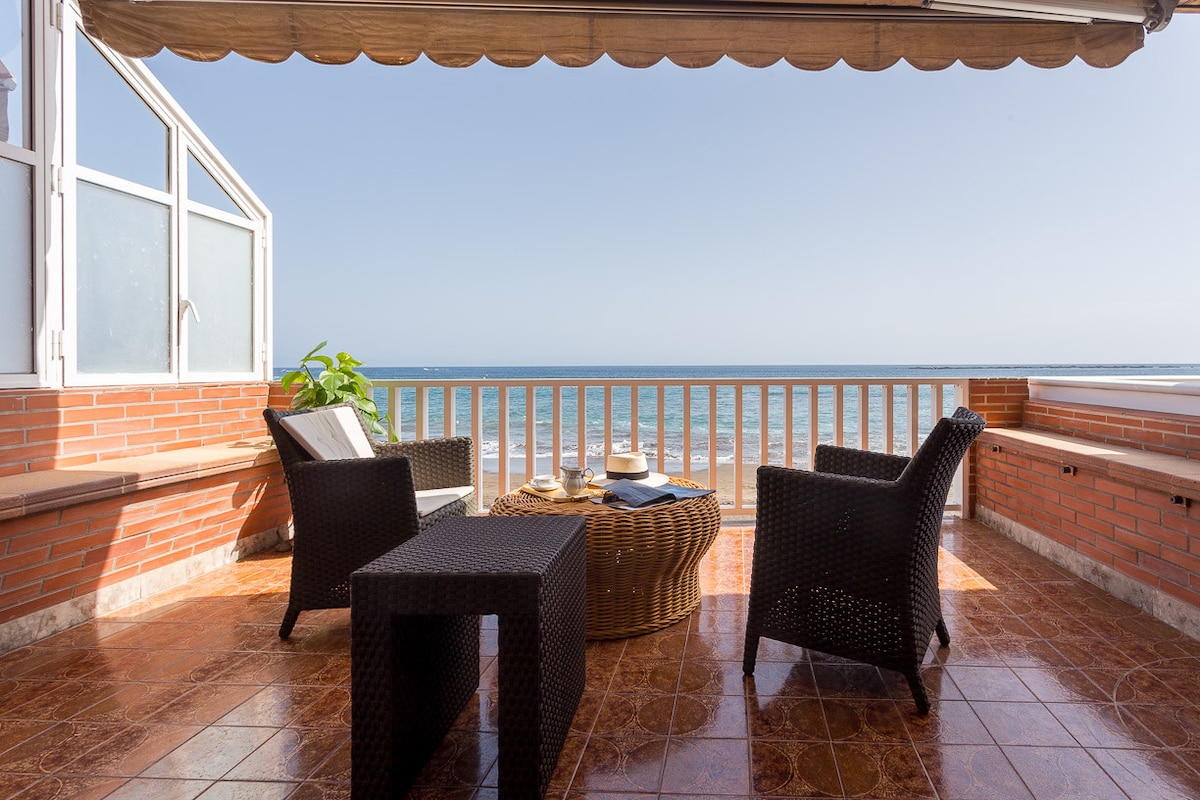 Mooi designappartement voor de zee en twee stappen naar het strand. Slaap met het geluid van de golven en word wakker met het uitzicht op de zon! Het appartement is volledig voorzien van alles wat je nodig hebt, ook voor gezinnen. Licht en ontspannend met veel restaurants in het gebied, is de perfecte poort op Gran Canaria.