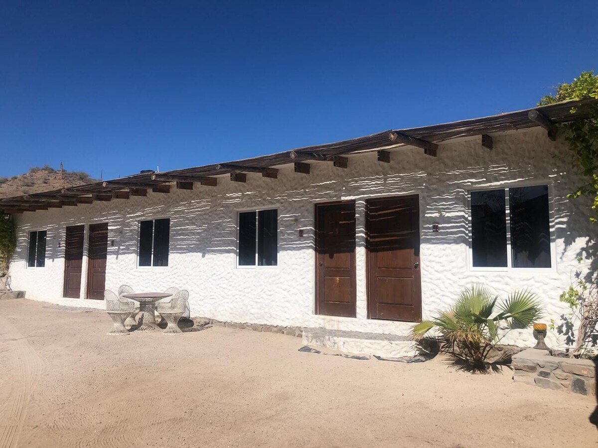 Ontspan en kom tot rust in deze rustige, stijlvolle ruimte. Gemakkelijke toegang vanaf de hoofdweg, net ten zuiden van Mulege. Dichtbij de prachtige stranden van de regio. Voldoende parkeergelegenheid. Op loopafstand van OXXO en benzinestation.