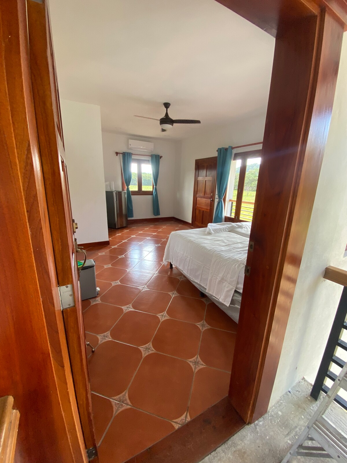 Casa Culebra: Rustieke charme ontmoet modern comfort in deze gelijkvloerse Airbnb genesteld in Balcones de Majagual. Geniet van een adembenemend uitzicht op de oceaan en de jungle vanuit dit privéreservaat in de open lucht. Met twee kingsize slaapkamers, warm water op zonne-energie en een volledig uitgeruste keuken, is het perfect voor een uitje. Koel af in het gedeelde, onlangs gerenoveerde zwembad op slechts een steenworp afstand. Gelegen op 20 minuten van de stad en op enkele minuten van het strand. Bereikbaar via 4x4 voertuigen. Snelle 200 mbps glasvezelinternet beschikbaar!