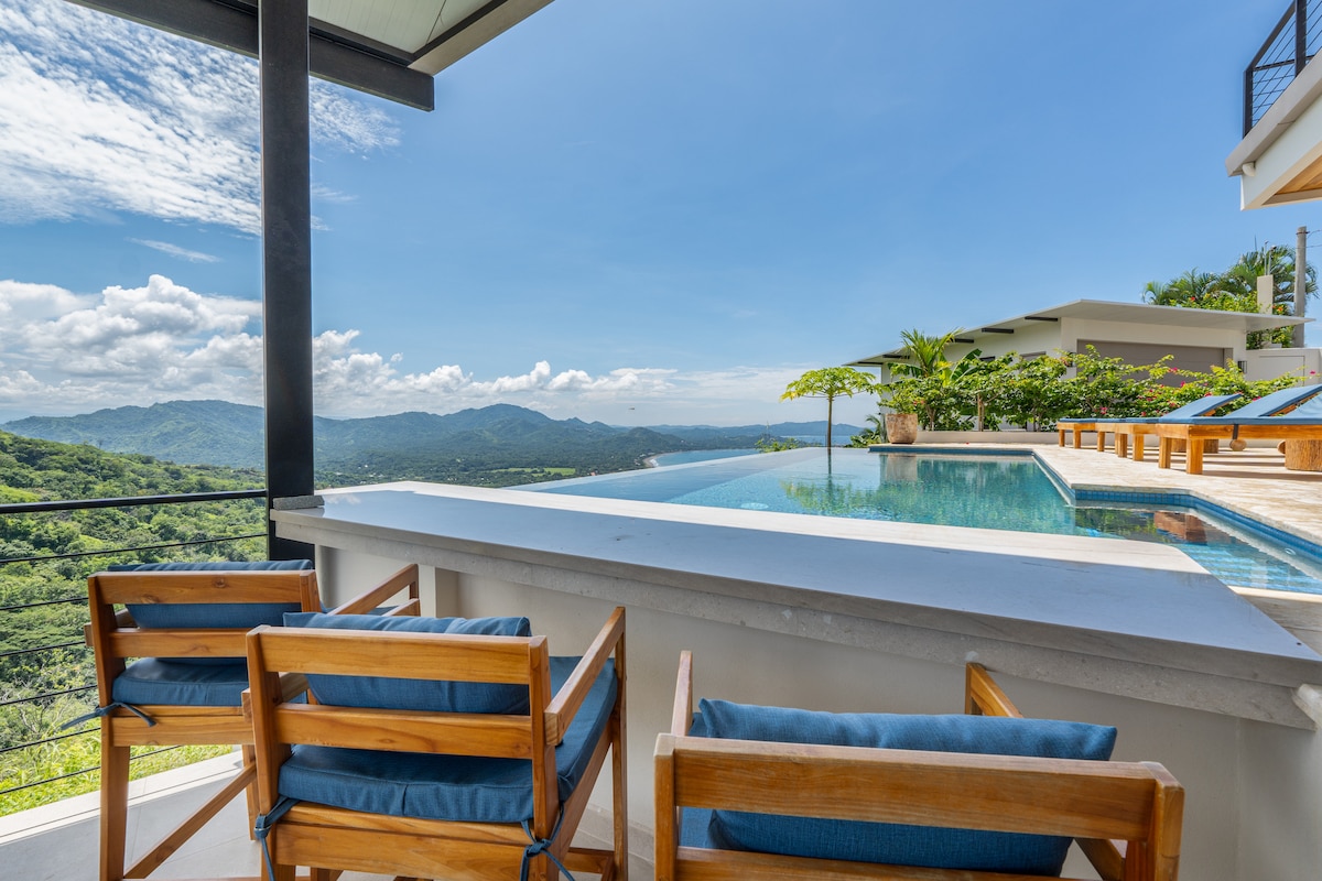 LUXE VILLA'S PURA VISTA MET EEN PRACHTIG UITZICHT OP DE OCEAAN!! Welkom bij de elegante Villa Pura Vista! Deze prachtige tropische villa is gelegen in de prestigieuze la Marcela gate community, (24 uur bewaking Een spectaculair UITZICHT. Huis hoog op een heuvel met uitzicht op verschillende ongerepte stranden, Catalina-eilanden, nachtelijke lichtjes en de Flamingo jachthaven, Potrero Beach baai. Afgelegen, maar toch op enkele minuten van prachtige stranden zoals Playa Danta, Playa Potrero, Playa Penca Playa Flamingo, Playa Conchal,