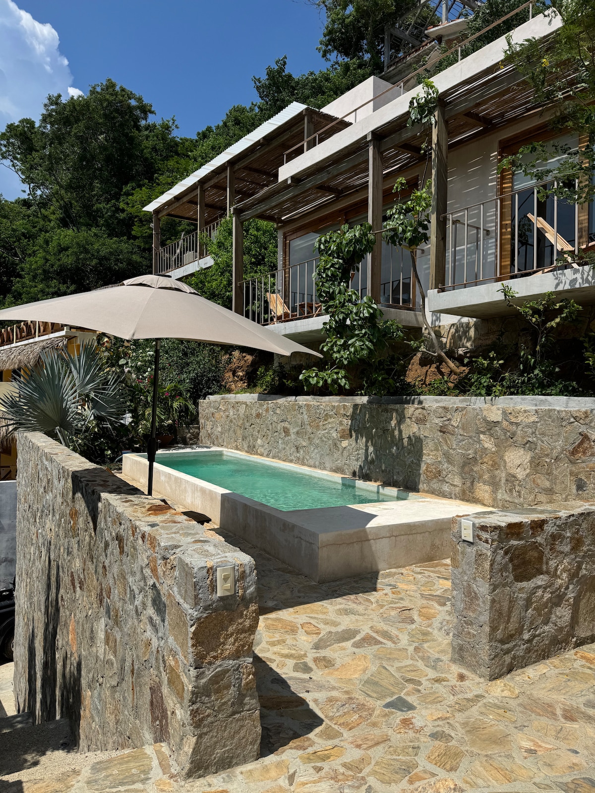 CASAPARAÍSO: de perfecte plek om op een elegante manier van je verblijf in Mazunte te genieten en tegelijkertijd in contact te komen met de natuur, waarbij je profiteert van een spectaculair uitzicht op zee. In slechts 1 minuut lopen ben je met je voeten in het zand van het beroemde KLEINE strand. De prachtige locatie heeft de nabijheid van alle diensten (restaurants en winkels) en een nieuwste generatie Starlink-verbinding. Het enige geluid is dat van de golven: een onvergetelijk verblijf...