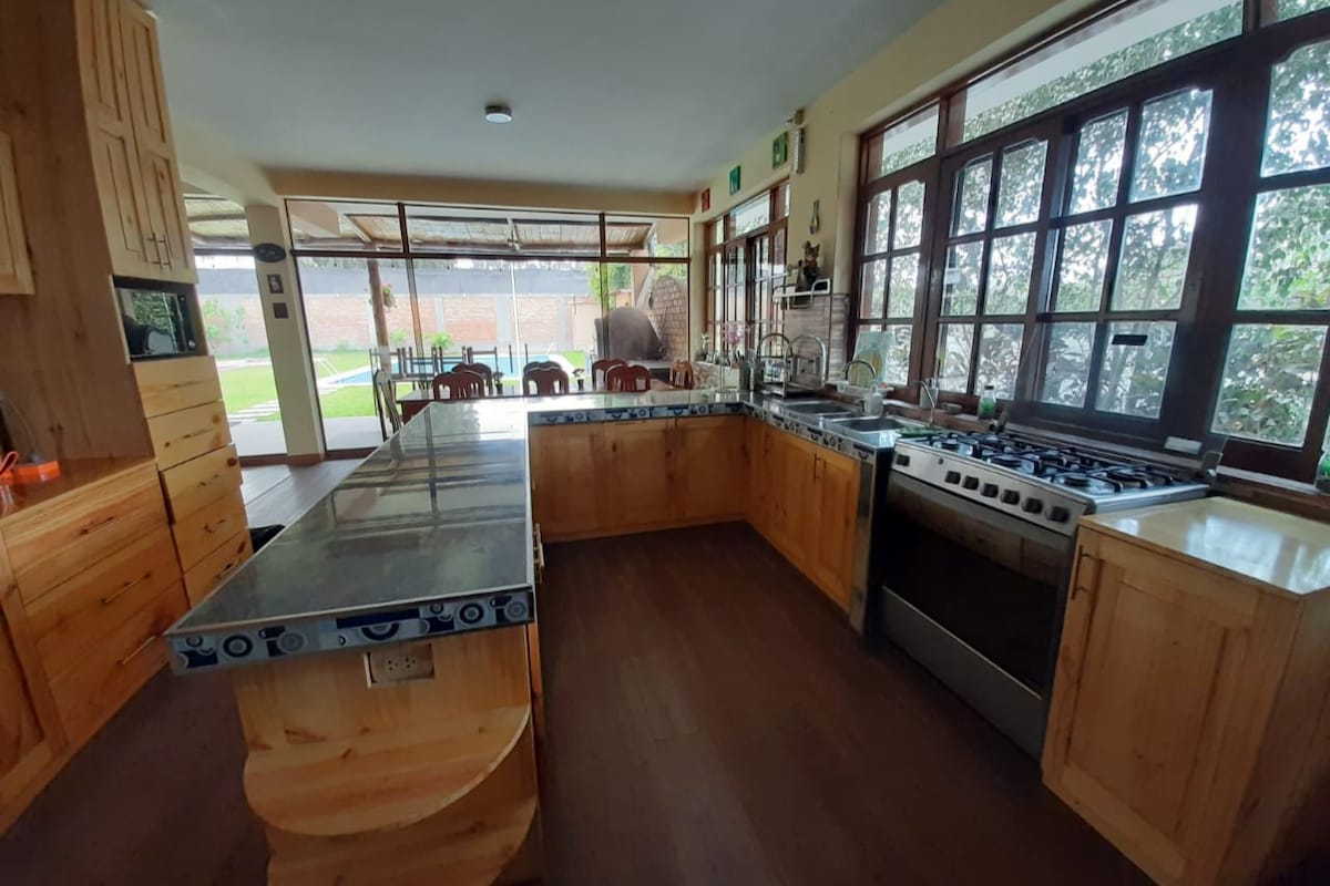 Wil je je lichaam, geest, ziel en ontspanning laten rusten ? "Geniet van een prachtig en gezellig landhuis met een prachtig uitzicht op landschappen en prachtige zonsondergangen voor maximaal zes personen. Gelegen in Pachacamac in een gebied van 3500 meter2 in een zeer rustige omgeving op 50 minuten van Lima. Het beschikt over een groot zwembad, draagbare grill, fulbito de mano, ping-pong en pad. Ze krijgen de ondersteuning van een schoonmaakmedewerker in de buitenlucht.