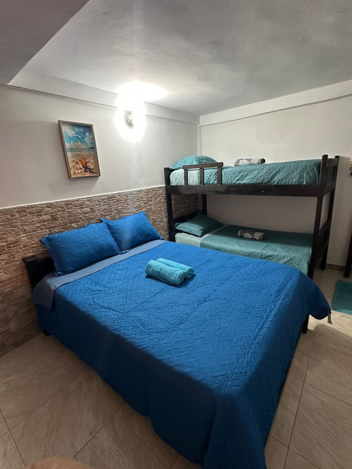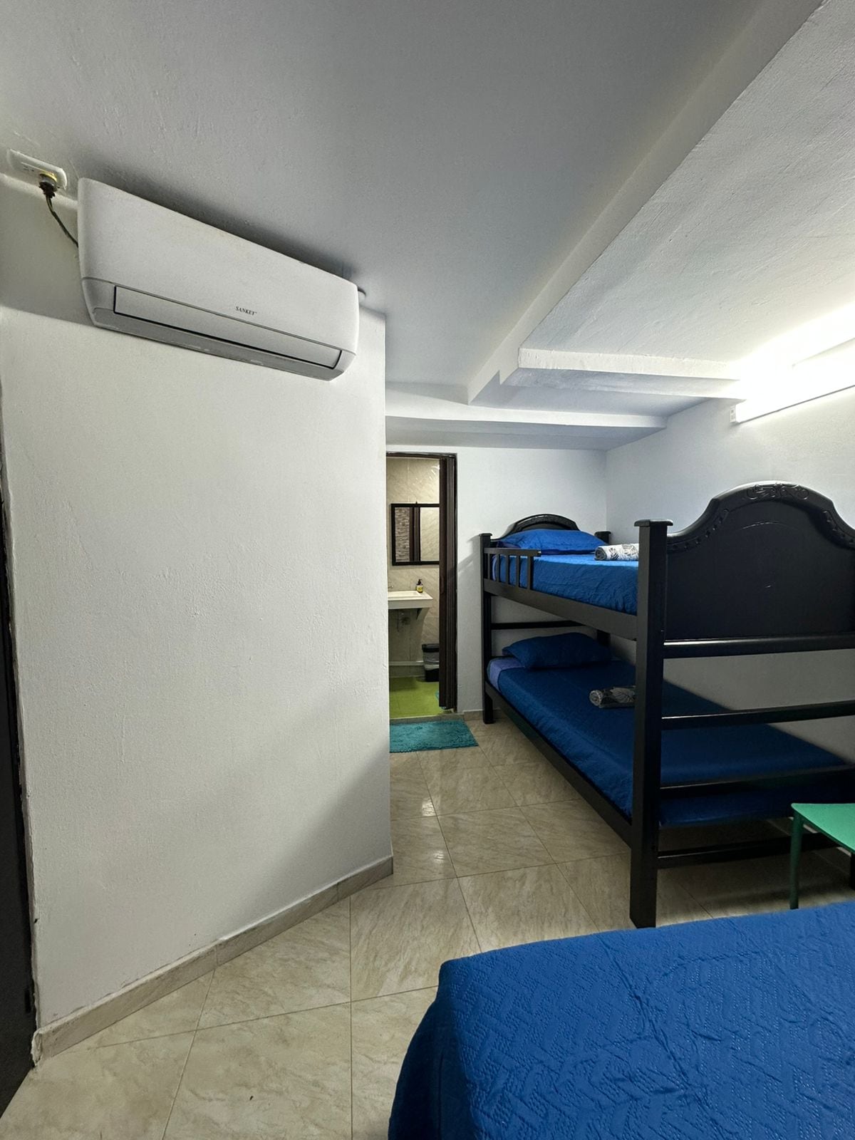 de zes-slaapkamer, gelegen in het Victors Vip hotel, is gelegen op het eiland San Andrés, naast het prachtige uitzicht Het is geschikt voor 6 personen, het heeft een tweepersoonsbed en een stapelbed, de kamer heeft airconditioning, uitzicht op de oceaan, nebecon om drankjes of voedsel op te slaan, een eigen badkamer, tv en zijn eigen sleutels het hotel ligt op een steenworp afstand van de luchthaven, diagonaal aan het Maryland hotel, op 3 minuten van het strand en op 3 minuten van het centrum van San Andrés