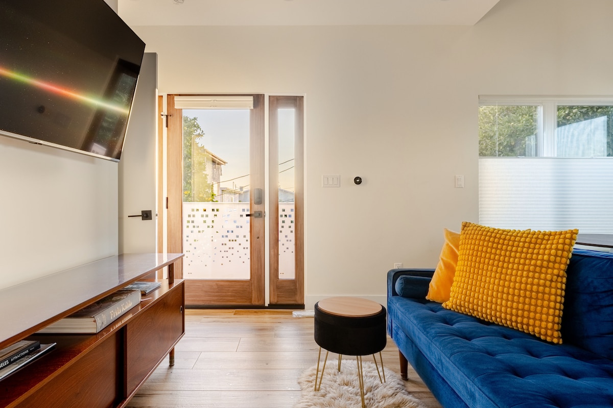 NIEUW! Scandinavisch huis met 2 slaapkamers, 2 queensize traagschuimbedden, 10 minuten van LAX Airport, Sofi Stadium, Intuit & Kia Forum, musea, stranden, rolstoeltoegankelijk, rolstoeltoegankelijk, rolstoeltoegankelijk en drempelvrije douche, 2 blokken verwijderd van de belangrijkste 405 snelweg, volledige keuken met alle keukenvoorzieningen om je eigen maaltijd te koken zonder te hoeven vertrekken, Gehele flat/villa met volledige privacy en eigen ingang, 55inch flatscreen-tv, super rustige familiebuurt, ideaal voor gezinnen of een rustige plek om te werken.