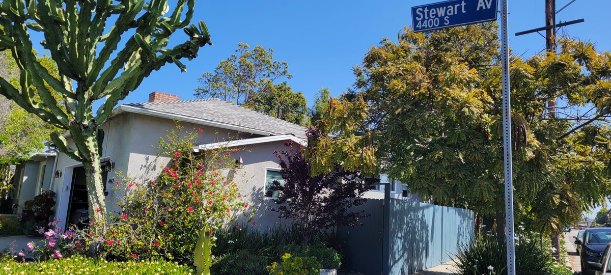 Gezellig, schoon, comfortabel en charmant huis, wifi. Geweldige omgeving, op een steenworp afstand van Playa Vista. Vlakbij LAX, het strand van Venetië en de jachthaven van Rey. Eigen studiokamer achter het hoofdhuis met een speciale poort om bij het achterhuis te komen. Het heeft een koelkast, magnetron, Kuerig-koffiezetapparaat, broodroosteroven, keukengerei. Badkamer is groot met shampoo, conditioner en douchegel. Handdoeken en een haardroger aanwezig. Houd er rekening mee dat er geen fornuis is om te koken en parkeren is op straat met parkeervergunning verstrekt.
