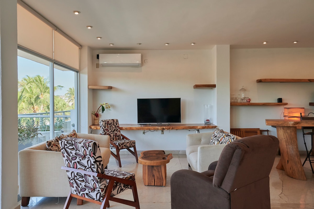 Welkom bij Casa Shanti! Dit geweldige penthouse heeft alles wat je nodig hebt, en MEER. STARLINK INTERNET. betrouwbaarder dan enig ander internet in de stad. een complete keuken met een blender, koffiezetapparaat, koffiezetapparaat, gloednieuwe koelkast en stijlvol ontworpen gasbranders. EXOTISCH houtontwerp overal, inclusief een ZELDZAME Macuil houten vloer in tegenstelling tot al het andere. Qua locatie zijn we 50 meter of minder van het strand in een super ontspannen omgeving in het hart van La Punta. RESERVEER DIRECT. Let op: mogelijke bouwwerkzaamheden.
