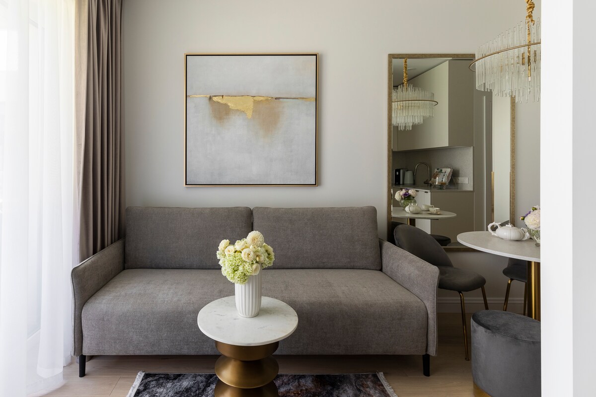 Modern design, Op de bovenste 24e verdieping van een beroemde wolkenkrabber . Grote ramen bieden een prachtig uitzicht op de stad en verder . Het appartement heeft veel faciliteiten,een grote badkamer met een massagejacuzzi en een hoogwaardig thuisbioscoopsysteem met OLED-tv en 12 luidsprekers in de buurt. Het bevindt zich boven een winkelcentrum, met de oude binnenstad aan de ene kant en het nieuwe zakendistrict aan de andere kant, beide op loopafstand. Perfect voor stellen, zakelijke reizigers en gezinnen.
