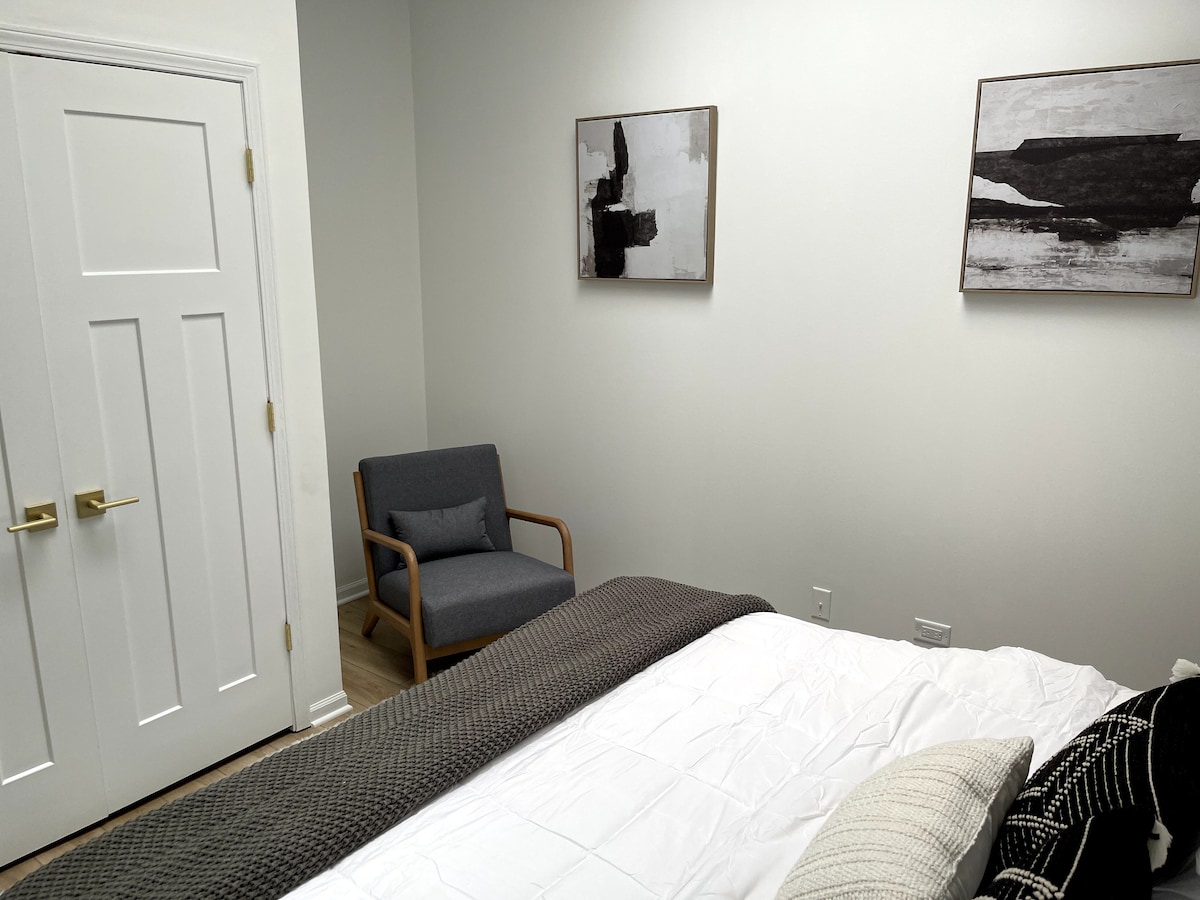 Stap in comfort in deze zorgvuldig ingerichte 1-slaapkamer appartement in Waukegan, Illinois. Perfect voor zakenreizigers, bezoekers of mensen die tussen verhuizingen zitten — deze unit raakt de sweet spot van stijl, functie en waarde. De ruimte Een slaapkamer met een volledig/queen bed plus een luchtmatras (voor extra comfort of flexibiliteit voor gasten) Lichte woonkamer met zitplaatsen, smart-tv en werkruimte Volledig uitgeruste keuken (fornuis, koelkast, magnetron, basis kookgerei en bestek)