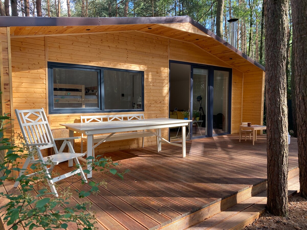 Około 60 km od Warszawy , na Mazowieckiej wsi , czekają na Ciebie dwa kameralne Tiny House. Znajdziesz tu spokój , ciszę i odpoczynek tak bardzo potrzebny w obecnych czasach. Domki pomieszczą komfortowo 2 osoby dorosłe. U nas odpoczniesz bez dzieci swoich i cudzych . Chętnie za to przyjmiemy niekłopotliwe zwierzęta. Minimalny czas najmu to dwie noce. W okresie wakacyjnym preferujemy jednak dłuższe pobyty. Możecie u nas korzystać z jacuzzi i sauny - są to opcje dodatkowo płatne. Zapraszamy .