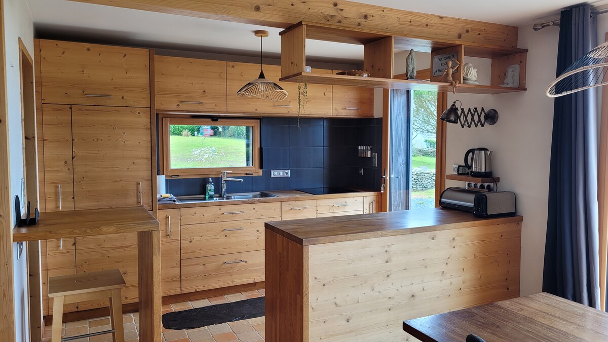 Een klimaatvriendelijke en ecologische habitat, ons kleine houten huis staat klaar om je te verwelkomen en je rust en plezier van de ogen te brengen. 35 vierkante meter al het hout bijna bekleed en hout bekleed met thuya en cipressenhout van een lokale zagerij, het is geïsoleerd met watten van katoen. Alles is doordacht en op maat ontworpen om een gezellige en lichte kleine cocon te creëren. Het uitzicht op zee vanaf het terras en het balkon nodigt uit om de baai van Audierne te verkennen.