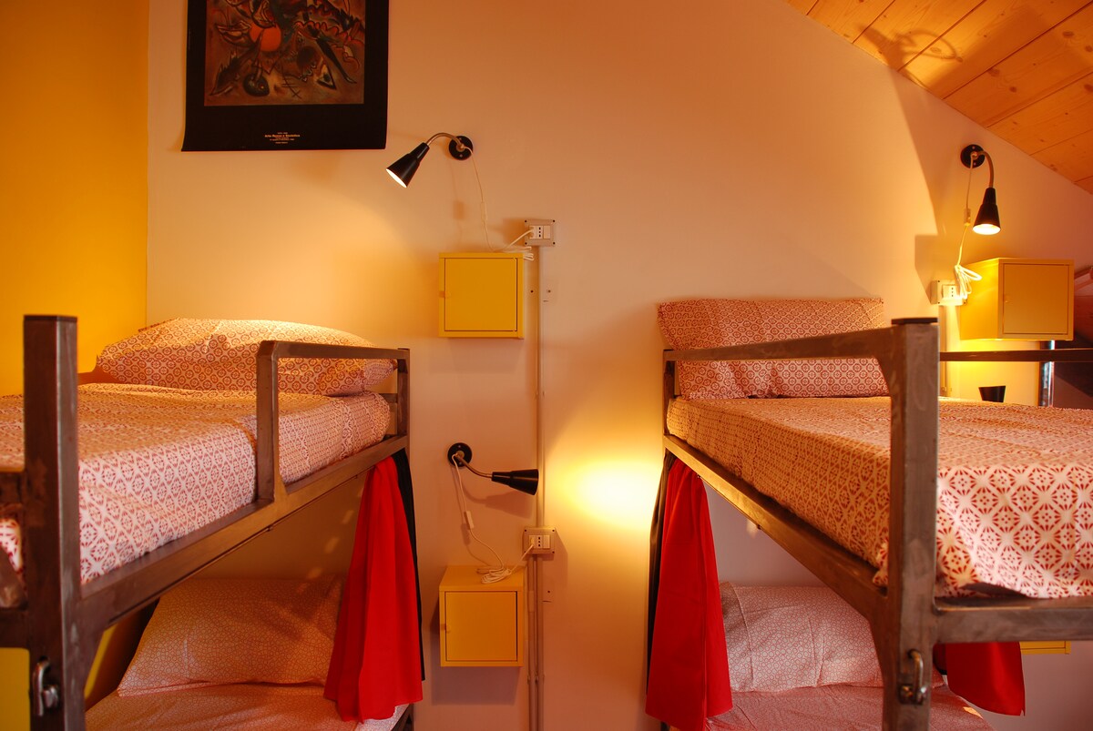 Slaapzaal met 4 bedden. Elke kamer heeft een afsluitbare kledingkast waar je je bagage kunt opbergen. Ze zijn de ideale oplossing voor wie zijn privacy wil behouden tijdens het verblijf. De badkamer is extern, maar privé en daarom uitsluitend bestemd voor degenen die deze gebruiken. Het schoonmaken van alle ruimtes van het hostel, inclusief slaapkamers en badkamers, wordt dagelijks uitgevoerd vanaf 10.00 uur.