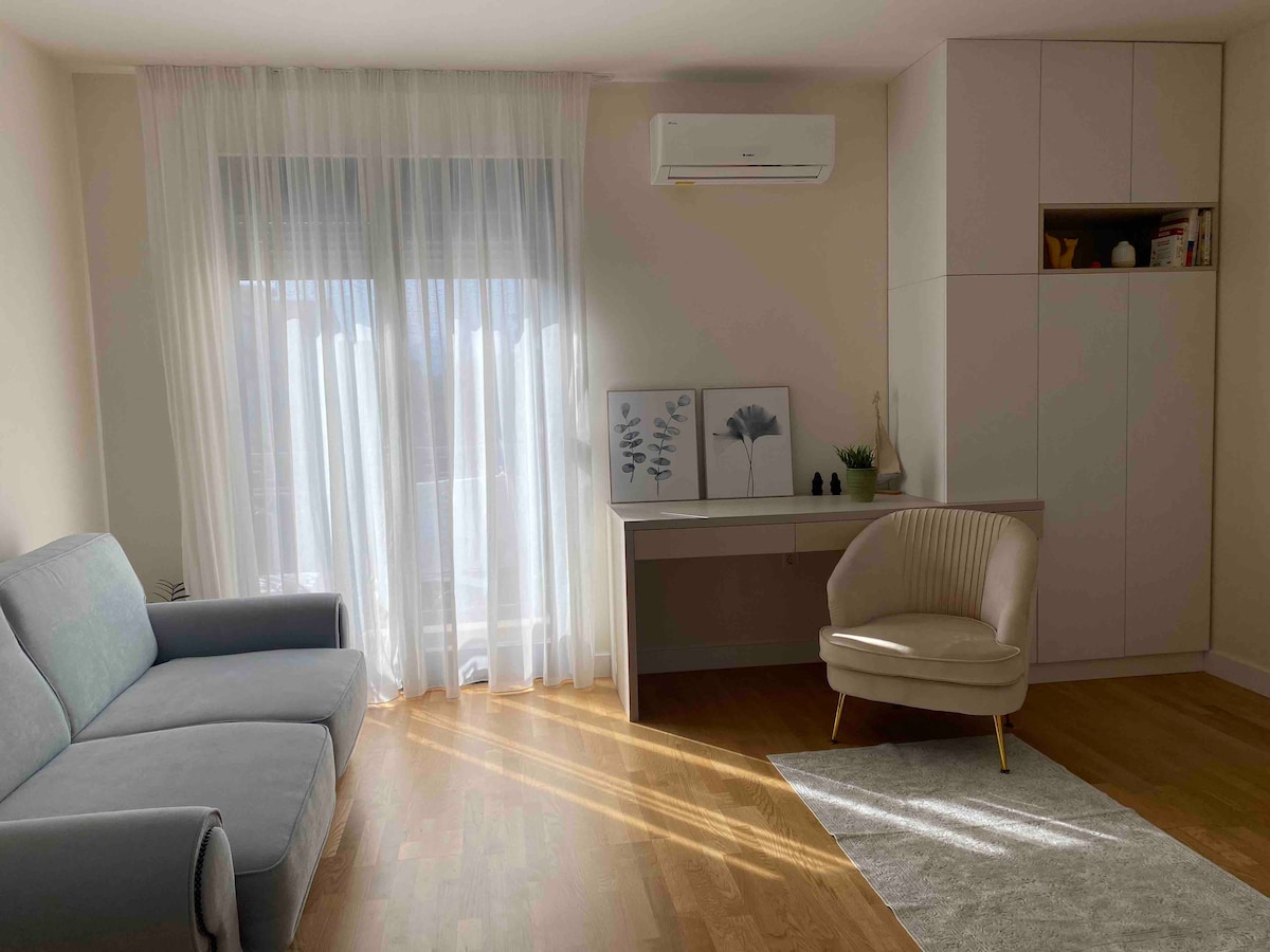 Geniet van je verblijf in een gloednieuwe studio in Podgorica! Deze gezellige ruimte beschikt over een handig Murphy-bed, een goed uitgeruste keuken en een rustig balkon voor je ontspanning. Geniet van de rust en het comfort op slechts 5 minuten lopen van het stadscentrum en op 2 minuten lopen van het centrale trein- en busstation. Perfect voor een heerlijk verblijf in hartje Podgorica!