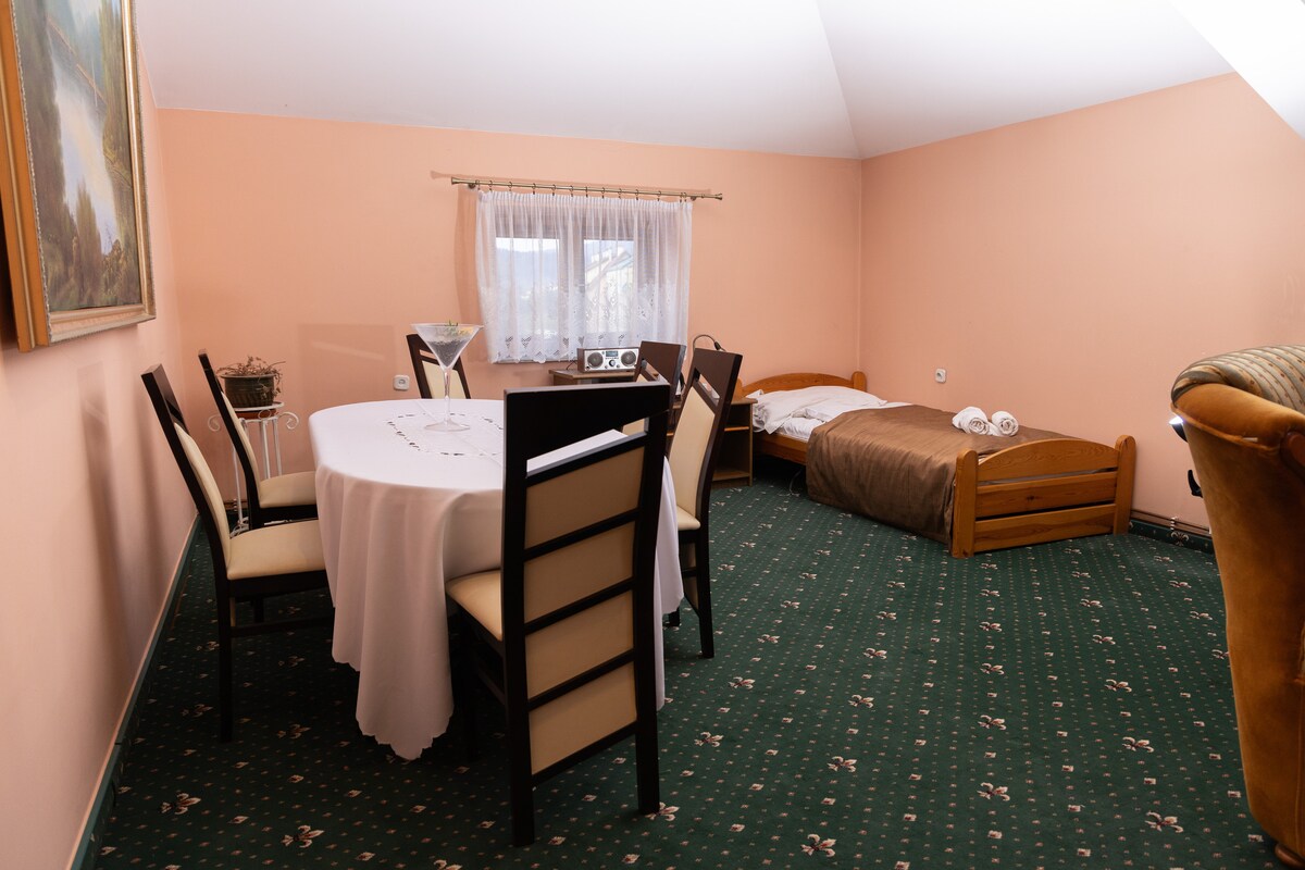 Het is de perfecte plek, niet alleen voor een gezinsuitje in de bergen. Met zijn zeer aantrekkelijke locatie kunnen onze gasten profiteren van de vele lokale bezienswaardigheden. We hebben ook restaurants op het terrein die je een onvergetelijke ervaring zullen bieden. Wij bieden je uitstekende gerechten uit de Poolse en regionale keuken.