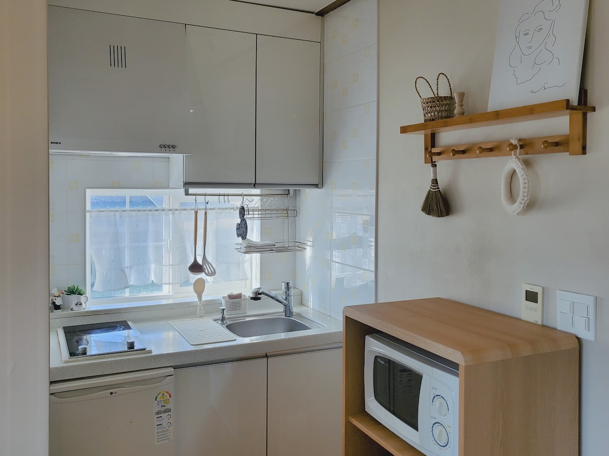 Pohang Ocean View Sea Private Pension Dit is Odo 309 Pension, een accommodatie met uitzicht op de oceaan op 1 minuut lopen van Odo Beach. Het pension is een privéhuis, zodat u kunt ontspannen in een privéruimte. De kamer bestaat uit in totaal 2 slaapkamers, een woonkamer, een keuken en een badkamer, en elke kamer en woonkamer zijn voorzien van airconditioning om een aangename omgeving te bieden. De keuken is uitgerust met een rijstkoker, magnetron, broodrooster, koffiepot en vele andere kookgerei, zodat je kunt koken. Het dak biedt een barbecue met uitzicht op de oceaan, terwijl de koele zeebries kan worden genoten tijdens de zomermaanden. Nabijgelegen toeristische attracties zijn Odori Beach en Yeongildae Beach, en je kunt gemakkelijk verschillende voedingsmiddelen en toeristische attracties in Pohang bezoeken. Odo 309 Pension is een aanbevolen accommodatie voor diegenen die willen ontspannen terwijl ze naar de zee kijken in een rustige omgeving. * Andere extra kosten * Standaard aantal personen (4 personen)/Maximaal aantal personen (6 personen) Extra kosten per persoon per nacht: 20.000 KRW Barbecuekosten: 20.000 KRW