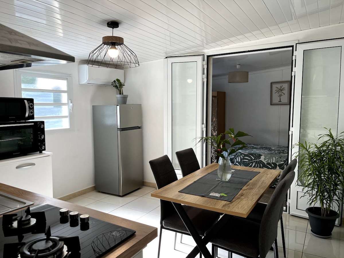 Studio Kaza Blanka is gemaakt voor een gezellige ervaring in een echte tropische sfeer. Gelegen in St-Leu in het westen van Reunion Island, op 5 minuten van het stadscentrum en de lagune, is de locatie ideaal. Het is geschikt voor twee personen in het grootste comfort met premium voorzieningen. De aangelegde tuin, varangue* biedt je een charmante leefruimte buiten. Wij staan tot je beschikking om van je verblijf een echt moment van ontspanning te maken. *Overdekt terras